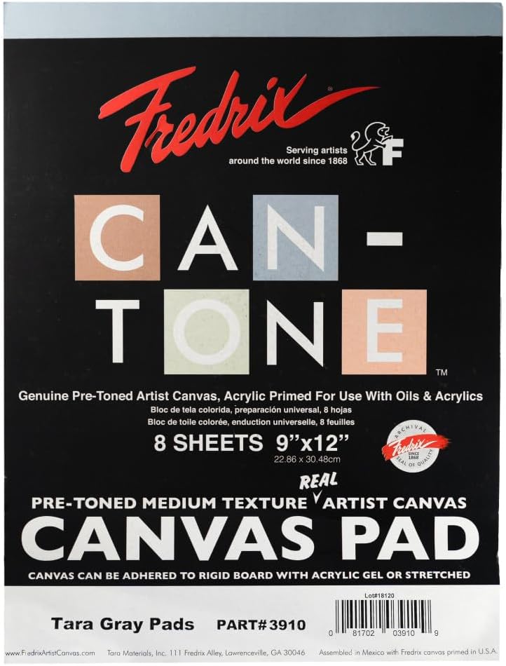 Excellent for studies, classes and workshops, Acrylic Primed Canvas Pads from FREDRIX are convenient and affordable with ten sheets per pad. Very portable, these canvas pads are perfect for travel, workshops and plein air painting. Excellent for stretching over stretcher bars, mounting for display or matting and framing under glass. The archival quality canvas sheets are double-primed just north of Atlanta, Georgia, with an acid-free acrylic titanium gesso.