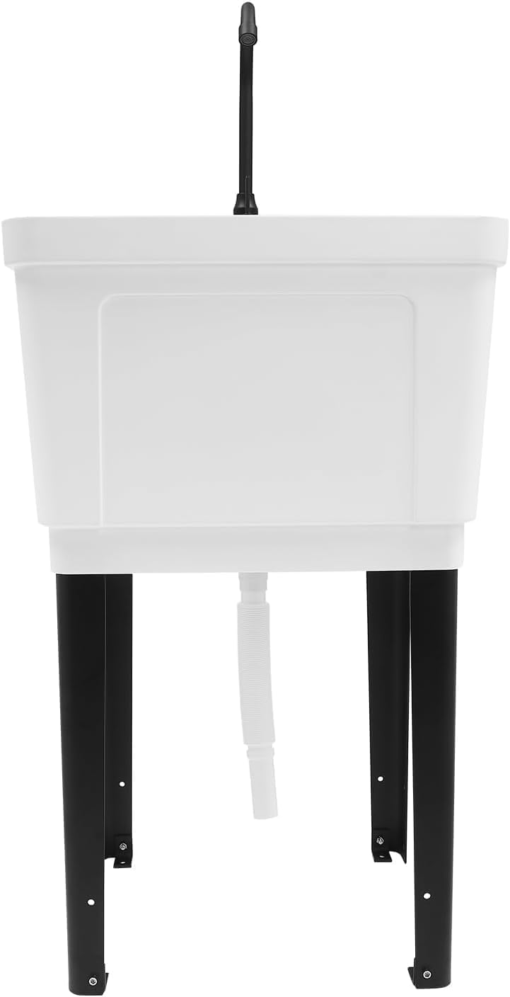 Experience the convenience of our floor-standing laundry sink, featuring a 60° rotatable faucet for effortless cleaning in any environment. Crafted from high-quality materials, this sink offers reliability and durability for everyday use. The spacious, deep basin minimizes splashing, providing ample space for all your washing tasks, from laundry to cleaning up after pets. Its user-friendly design includes all necessary accessories for a quick and hassle-free installation, making it an ideal choice for busy households. With a sleek, modern design, this versatile sink complements minimalist kitchens, laundry rooms, bathrooms, and more. The four sturdy iron support legs feature a right-angle design and robust rectangular structure, reinforced with strong screws for exceptional stability during use. Feel confident washing clothes or pets, knowing the sink remains secure throughout the process. The innovative honeycomb bubbler delivers a fine, steady water flow that helps prevent splashing and conserve water, making it an eco-friendly option for your home. Standing at an overall height of .07 inches and featuring a sink depth of 11.81 inches, this design reduces bending and strain on your back for a more comfortable cleaning experience. Product Specifications: Number of Pieces: 1 Number of Sinks: 1 Number of Handles: 1 Faucet Adjustable Angle: 60° Water Inlet Pipe: 100cm/9.7in Max. Drain Pipe Length: 80cm/1.5in Sink Inner Size: 4940.50cm/19.1611.81in Overall Product Size: [insert dimensions] Transform your laundry experience w