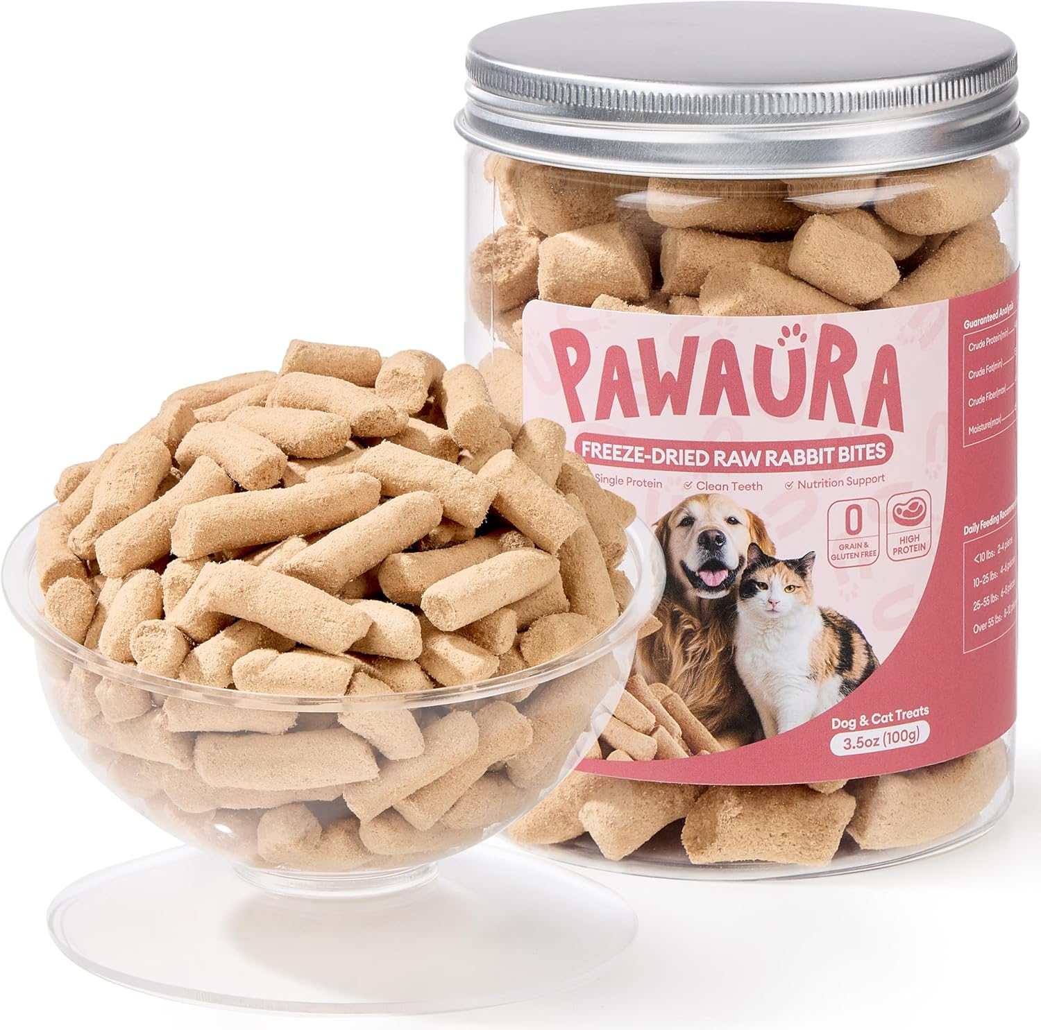 Made from 97% premium rabbit meat and organs, including heart, liver, kidneys, lungs, and bones, these freeze-dried mini nibs provide a nutrient-dense, single-protein, grain-free option for dogs and cats. Packed with essential amino acids, vitamins, and minerals, they support lean muscles, steady energy, overall health, and oral hygiene. Crunchy and flavorful, they can be served as a standalone treat, food topper, or meal mixer, making them ideal for pets of all life stages, including those with sensitive stomachs or protein allergies. Rapidly frozen at -40℉, these treats lock in freshness and natural nutrients without any artificial additives.