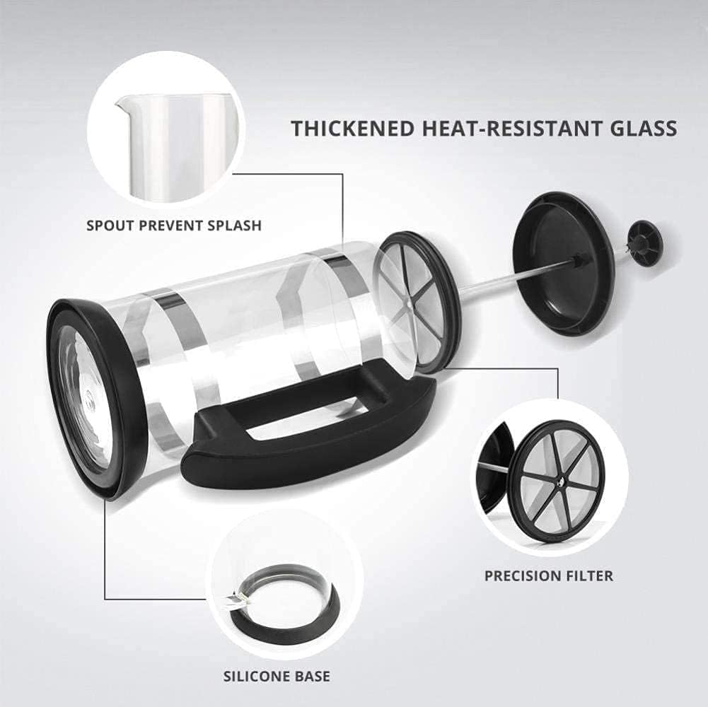 Features: Safe material: High-quality borosilicate glass contains no harmful substances to ensure you drink safely Easy to pour: This coffee brewer has a designated lid on the top for additional filtering and no drips on the mouth The perfect gift: The fascinating look adds a unique charm to your home and complements the variety of drinks. Ideal gift for wedding, holiday, birthday, etc The perfect French espresso machine for hot and cold coffee and tea Specifications: Specification: Product name: French pressure pot Material: Stainless Steel &borosilicate glass Weight: 500g Material: glass Size: 20x10x10cm Capacity: 1000ml Colour: Black Package includes: 1 x French coffee maker Tips for glassware: Do not recommend using this coffee machine in a microwave oven Although it can be washed in the dishwasher, it is recommended to clean it manually All glassware should be handled with care. Please use this glass coffee pot carefully when washing If you have any questions, please contact us in time, we will answer your inquiry within 24 hours