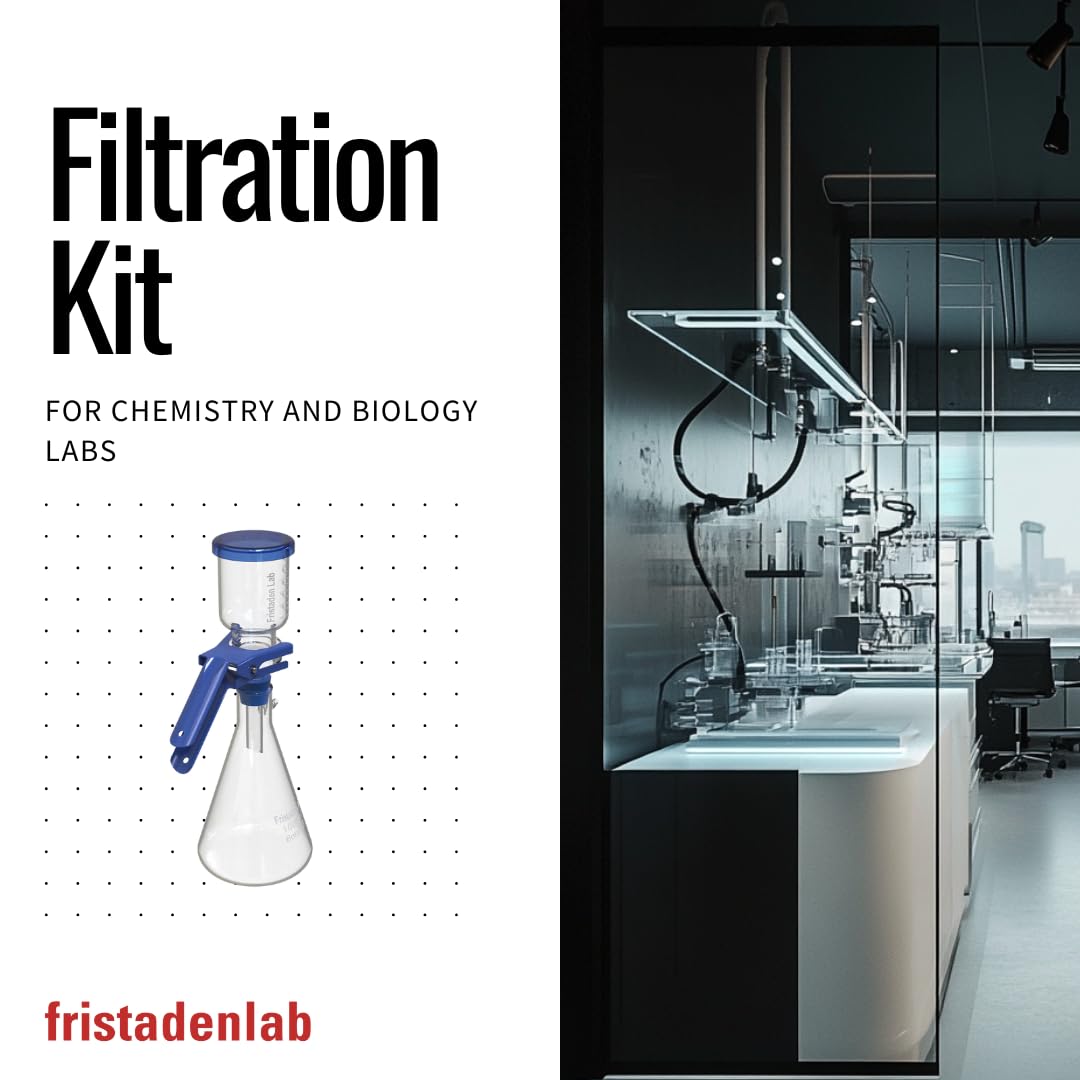 Upgrade your laboratory setup with the Fristaden Lab 2000 mL Vacuum Filtration and Distillation Kit, designed for high-volume filtration and precision experiments. Made from premium borosilicate glass, this robust apparatus withstands heat, chemical exposure, and pressure for reliable performance. The oversized 2000 mL filter flask, combined with a 300 mL graduated funnel, allows for larger batch processing without sacrificing accuracy. A sturdy aluminum clamp ensures the apparatus stays secure during operation, while compatibility with 42–60 mm membrane filter papers provides versatile use for a wide range of filtration tasks. With clear graduations and a user-friendly design, setup, measurement, and cleaning are quick and straightforward. Perfect for research labs, educational programs, or home laboratory enthusiasts seeking a high-capacity, durable filtration solution. Backed by a 1-year warranty, this kit ensures dependable results for all your experiments.