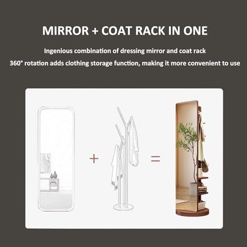 Introducing the 360 Rotating Body Mirror Coat Stand, the perfect blend of style and functionality for your living space. Measuring 65.7” x 15.7”, this full-length mirror provides an expansive view for outfit checks and grooming, ensuring you always look your best. Its innovative dual-purpose design features a sleek freestanding mirror alongside a practical coat rack, complete with a 360-degree rotating base for easy adjustments and efficient storage. Crafted from durable rubberwood and explosion-proof glass, this contemporary mirror coat stand seamlessly elevates any room's decor, making it an ideal addition to bedrooms, entryways, dressing rooms, or retail spaces. It beautifully balances aesthetic charm with everyday practicality, helping you maintain a stylish and organized area without taking up excessive floor space. Whether you're preparing for a busy day, getting ready for a night out, or simply checking your appearance, this full-length mirror guarantees the perfect view each time. Its solid wood construction not only provides stability but also adds a refined touch to your home decor. Enhance your space with the 360 Rotating Body Mirror Coat Stand—where elegance meets everyday utility, making it a must-have for anyone seeking both style and functionality. Product Material: Rubberwood (Solid Wood) Product Dimensions: Height 167cm (65.7in), Base Diameter 40cm (15.7in), Mirror Width 30cm (11.8in), Mirror Height 160cm (63in)