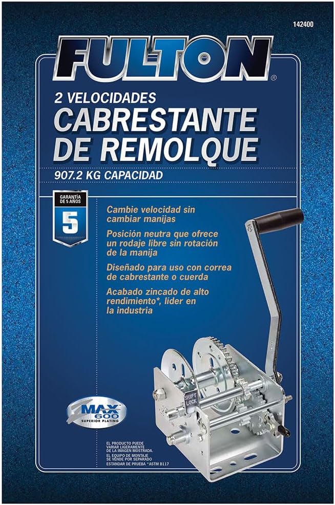 • 2,000 POUND CAPACITY: Fulton Boat Trailer Winch features a 2,000 lbs. capacity and two-speed winch system: one fast speed for quick pull-in, and a second low speed for increased mechanical advantage.