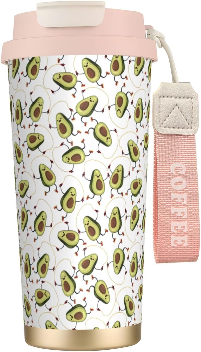 This Funny Cartoon Avocados Print travel Coffee Mug supports three drinking modes: the direct drink spout for quick drinks during commutes, the straw port for iced coffee and other spill prone beverages, and the open top design that replicates the traditional coffee cup experience. BPA Free 316 Stainless Steel, Safe and Durable Inner liner made of food grade 316 stainless steel, non toxic, odorless, BPA free, safe for long term use.