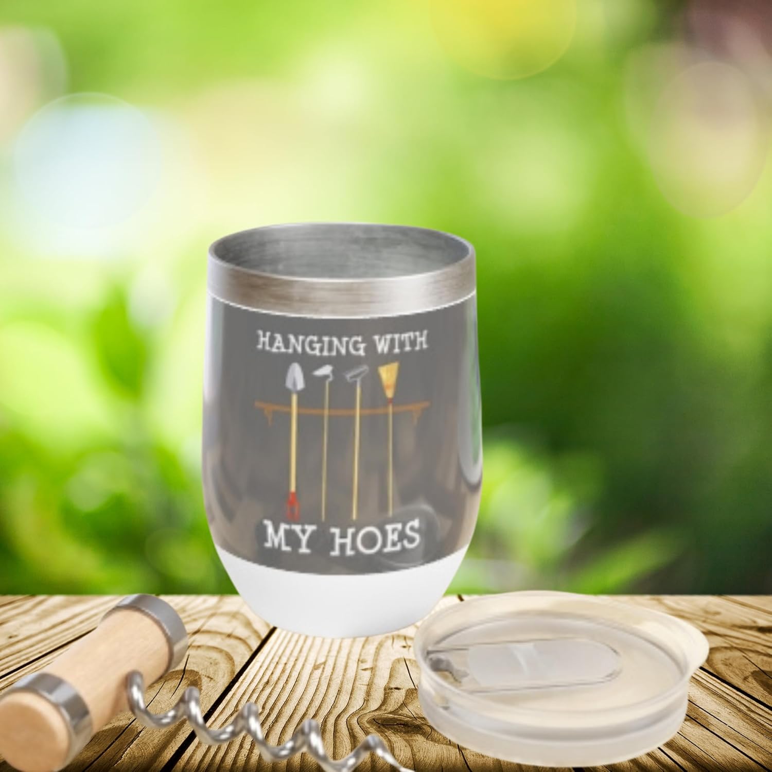 Elevate your gardening moments with a touch of humor using our 12 oz. Stainless Steel Insulated Wine Tumbler that proudly boasts: "Hanging with My Hoes." Perfect for gardeners who know that a little bit of fun makes tending the garden even better. Crafted from high-quality stainless steel, this tumbler keeps your wine at the ideal temperature for hours, whether you’re enjoying a chilled rosé or a cozy mulled wine. The double-wall insulation ensures that your drink stays just right, no matter where your gardening adventures take you. The secure, spill-resistant lid makes this tumbler perfect for outdoor use, so you can sip your favorite beverage while pruning, planting, or simply enjoying your garden. Its sleek design and durable build mean it’s not just practical, but also a stylish accessory for your gardening routine. A great gift for the garden enthusiast in your life, this tumbler combines functionality with a fun twist. Embrace your garden humor and make every sip enjoyable with this witty and practical wine tumbler!
