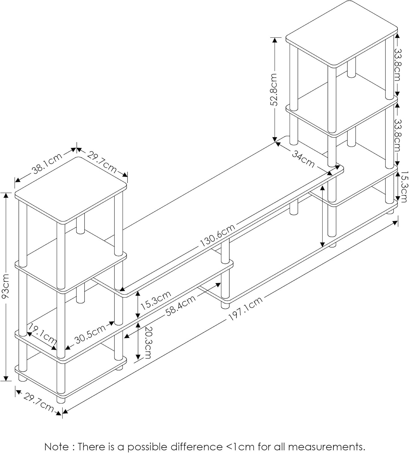FURINNO Turn-N-Tube Grand Entertainment Center, Espresso/BlackFURINNO Turn-N-Tube grand Entertainment center is not simply just an Entertainment center; It can also be used as a multipurpose rack, a display rack or even a shoe rack. The entertainment center has several racks and shelves to hold your loose stuffs or decorations. It has simple and clean style that can match most home. It is made of particle boards and round poles. It may seem to have many parts to put together but it is very simple and easy. Just follow the instruction of turning and twisting poles against the boards. All the parts are tested for durability and strength. Care instruction: wipe clean with clean damped cloth and avoid using harsh chemical to prevent damage to the furniture. All the pictures are for illustration purposes only; decor items are not included in the set.Furinno Simplistic End Table, Espresso/BlackThis simplistic Series end table two-piece set is designed to fit in your space, your style and fit on your budget. This unit is so simple, both in design and assembly. It uses the turn-s-tube mechanism to assemble the unit in 5 minutes. It is proven to be the most popular RTA furniture due to its functionality, price, and the no hassle assembly. The DIY project in assemble these products can be fun for kids and parents. There are no screws involved, thus it is totally safe to be a family project. Just turn the tube to connect the panels to form a storage shelf.