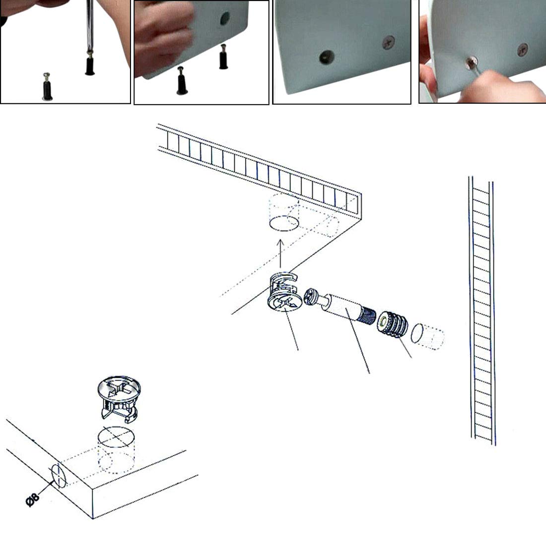 Furniture Connecting Fitting M6 Thread Bolts Dowels Screws 5 Pcs