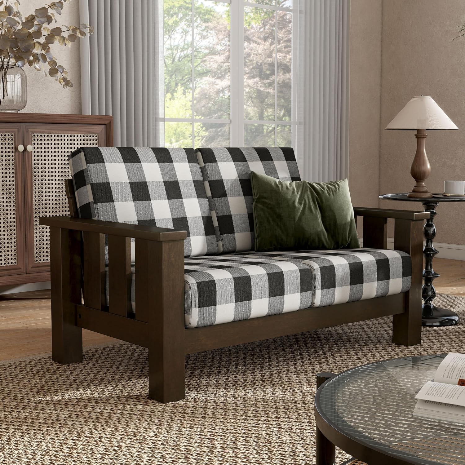 Two-Piece Set with Timeless Appeal This living room sofa set includes a modern couch and modern loveseat—all upholstered in a removable black-and-white plaid fabric for a cohesive, farmhouse-inspired look.Each piece is built with a medium-soft seat supported by foam and spring, providing the perfect blend of sink-in comfort and dependable support.Crafted from sturdy rubberwood and finished in a warm dark walnut stain, the living room furniture set features wide armrests, thick block legs, and slatted backs, offering a solid, grounded aesthetic with rustic charm.Flexible and Stylish for Any Room Ideal for furnishing your entire living room or a spacious family area, this two piece set delivers a coordinated design solution that doesn’t compromise on comfort.The cozy couch provides ample room for gatherings and the comfortable loveseat is perfect for intimate seating.Removable seat cushions and washable covers make cleaning simple, while the wood frame and supportive seats ensure this comfy sofa set is built to last.Whether you’re hosting guests or enjoying quiet moments, this comfortable sofa set offers versatile comfort with a signature look. Have a question or need assistance? Contact us before starting a return—we’re here to help! 📞 Customer Service: 888-980-5122 📧 Email: [email protected] We’re dedicated to finding the best solution for you!