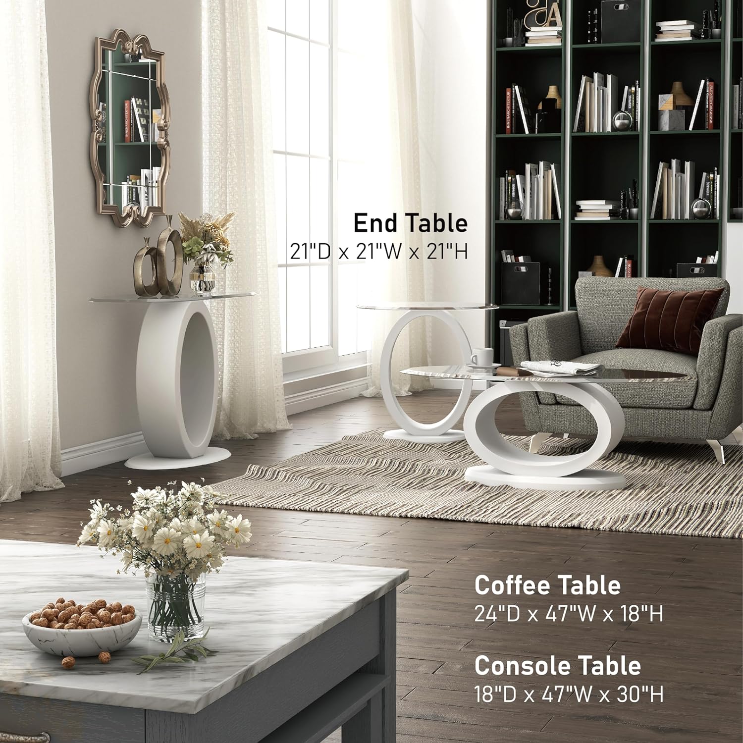 | Item Type Name | Oval Modern Center Table, Contemporary Furniture, Beveled Tempered Glass, O-Shaped High Gloss Pedestal, for Living Room, Home Office, Bedroom |