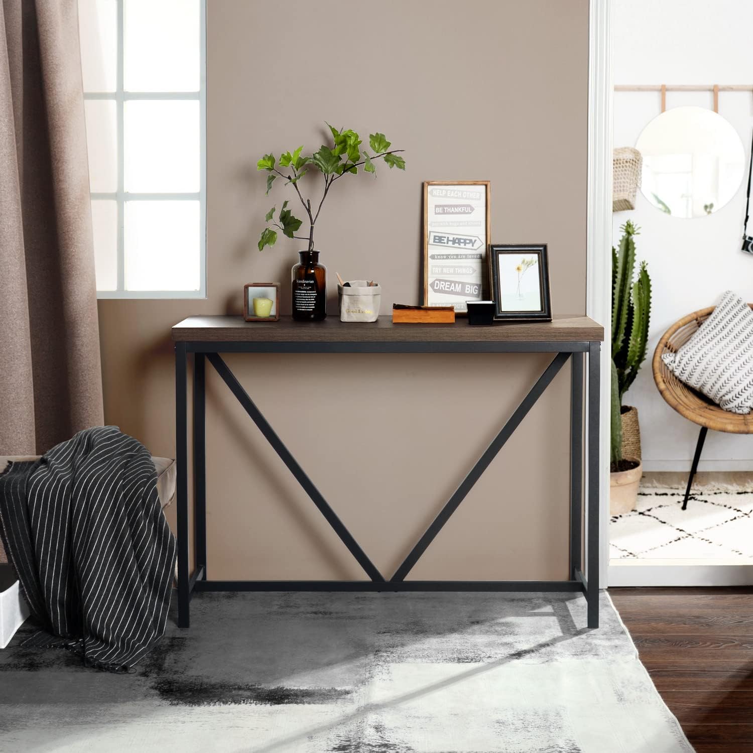 FurniutreR Industrial 47In Narrow Sofa Endtryway Thick Table Top for Hallway Living Room Office Entryway Corridor Console, Brown