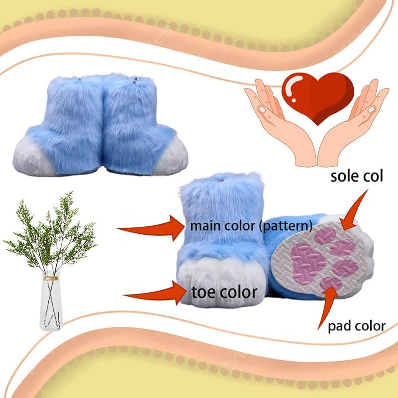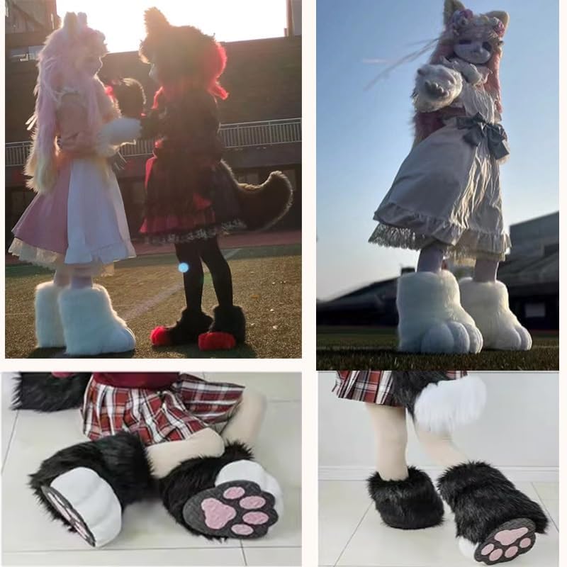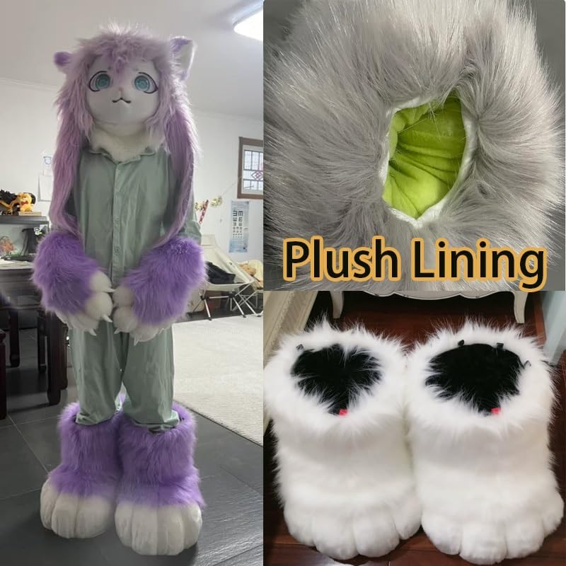 These comfortable slippers are perfect for parties, Halloween celebrations, costume events, and comic conventions to help you stand out from the crowd.A favorite among anime and cat cosplay fans, these adorable plush slippers are sure to bring joy to everyone's day.Product name: furry shoe coversGlove sizes: one size fits allFoot Size: One size fits feet size 43 or smaller.Material: Faux fur outer, plush lining.Care: Hand wash only. Please comb the fur when you receive it as shedding may occur.packing list:A pair of furry shoe coversNote: Our store offers a variety of cosplay accessories such as animal heads and claws, perfect for completing your look or adding a playful touch to your everyday life.Customer Service: Baishun Shanghai Airlines is here to serve you wholeheartedly. If you have any questions or concerns about your purchase, please feel free to contact us and we will help you immediatelyDue to differences in shooting angle, light, personal color vision, electronic product display, etc., there will inevitably be differences between the actual object and the picture. Please refer to the actual product.
