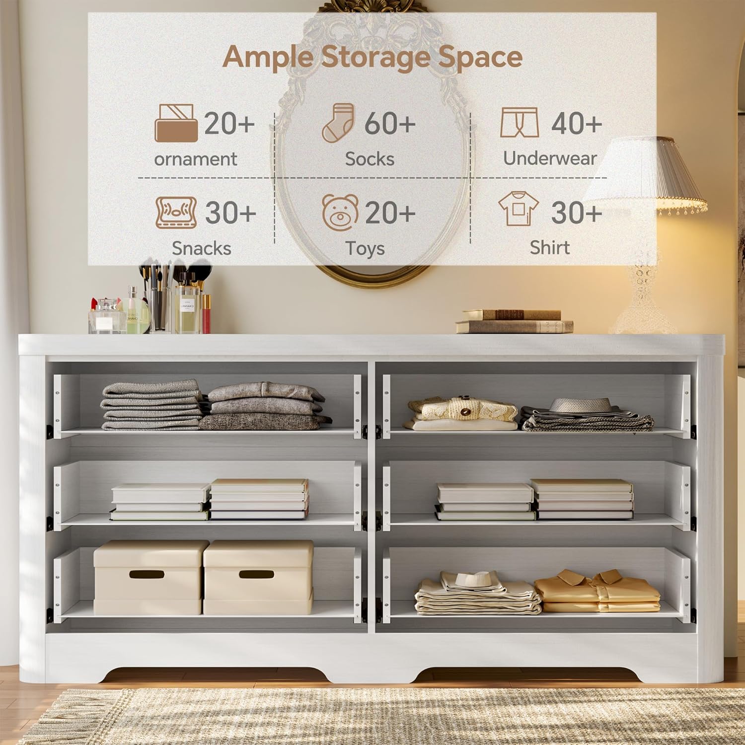 | Size | 15.8"D x 47.3"W x 31.5"H (6 Drawers) |