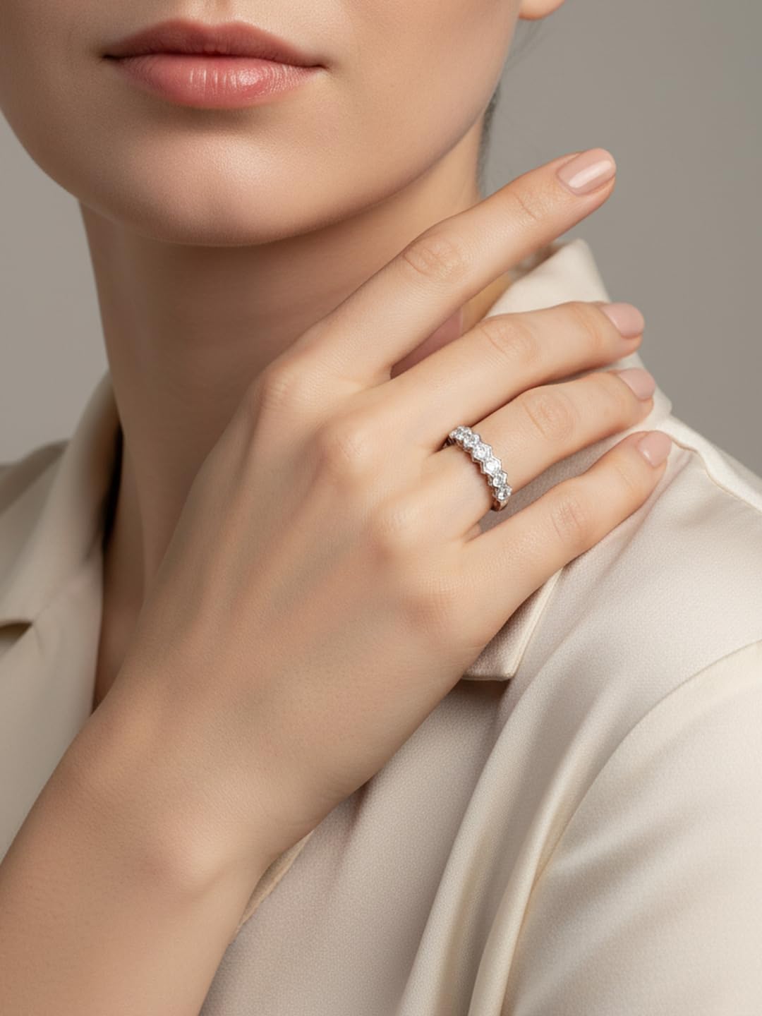 FWM Jewelry, Forever Wonderful Memory for You or Your Love One. All FWM jewelries are crafted with 925 Sterling Silver, which is 92.5% pure silver, with Top-grade Moissanites and Lab-Created Sapphires/Emeralds/Rubies, ensuring high quality and durability, These materials is not only beautiful but also hypoallergenic, making it suitable for everyday wear. Top-Grade Moissanite: known for its exceptional brilliance and durability, is a sustainable alternative to diamonds, with a lower environmental impact and a high refractive index that gives it a dazzling sparkle. High-Quality Lab-created Sapphires, Emeralds, and Rubies: FWM Jewelry's lab-created gemstones are produced using advanced techniques, have the same chemical, physical, and optical properties as their natural counterparts but are more sustainable and ethical.