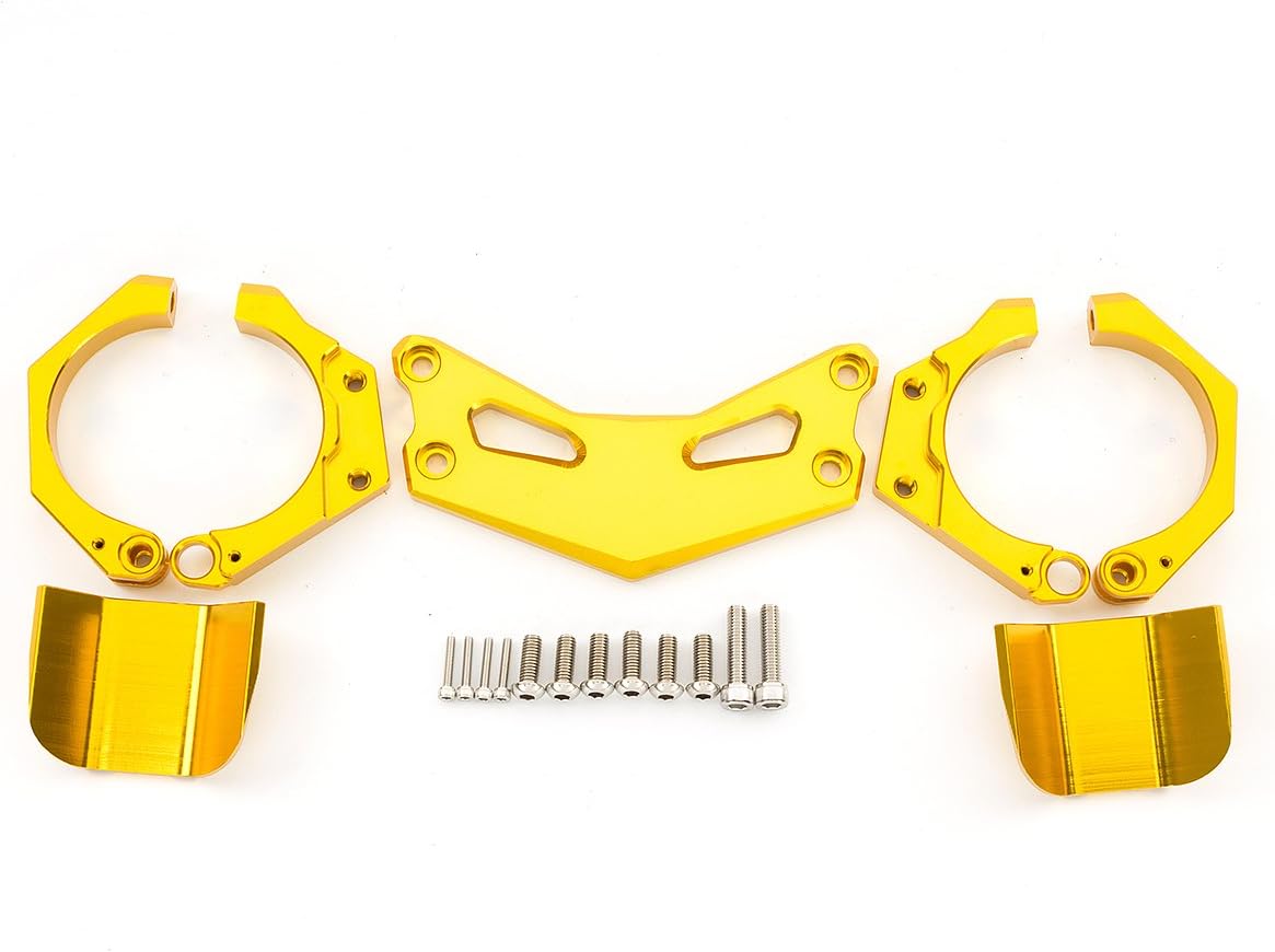 Fitment: YZF R3 R25 MT03 MT25 2013-2018 Feature: 100 % brand new Material : T6061-T6 Aluminum (High Quality Material, Light grade & Light-weight) Finish: CNC & Anodized (durable and not easy to fade) Color : Show as pictures If you need other colour, please contact me, thank you Placement on Vehicle: Front Weight: 1.1 LB Package Included:1xFront Balanced fork brackets Others: Perfect fit and no modification is needed, no install instructions included Special Features: 1.CNC cut to precisely fit your bike while protecting the area from scratches 2.Each item is designed directly from the original motorcycle parts to ensure accurate fit with the model and annual compatibility 3.Precision manufacturing:CNC cut to precisely fit your bike while protecting the area from scratches About after-sales service: 1.Provide three months free warranty 2.We provide high quality products and best service to each customer 3.Everyone, If you have any questions, please do feel free to connect with us