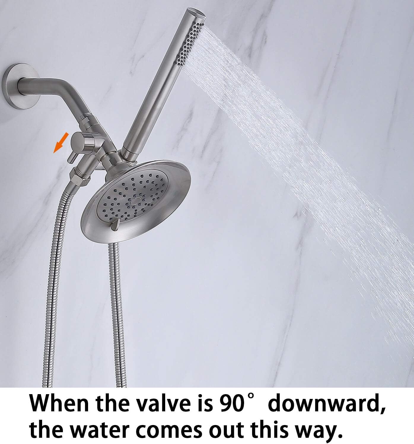 This is an all-metal hand shower set that includes a 3-function handheld shower wand, comes with a handheld holder for controlling the on/off switch of the wand and a 70-inch tangle-proof stainless steel hose. All made of metal for strength and durability.The 3-function handheld shower wand has a push-pull switch for easier one-handed operation. The three modes are massage mode, spray mode, and mix mode. Massage mode can be good for you to relax your tight muscles.The handheld bracket, which can control the handheld shower bar to turn on or off individually, makes it convenient for you to pause the handheld shower while applying soap or bathing children or pets, which is a unique design in the market. At the same time, the holder can adjust the angle of the hand shower wand.The stainless steel hose, the size is 70 inches, can be stretched to 75 inches, made of stainless steel, will not tangle together, flexible and convenient. Convenient for you to better clean the corners of your bathroom and more comfortable to use.This 3-way diverter with holder features one 1/2" IPS water inlet and two 1/2" NPT water outlets, fitting perfectly with standard shower heads and hoses. When both outlets are used simultaneously, the water pressure is halved. Note that this diverter does not have a shut-off option. The novel multi-functional metal hand shower set is designed to bring you a diverse shower experience.