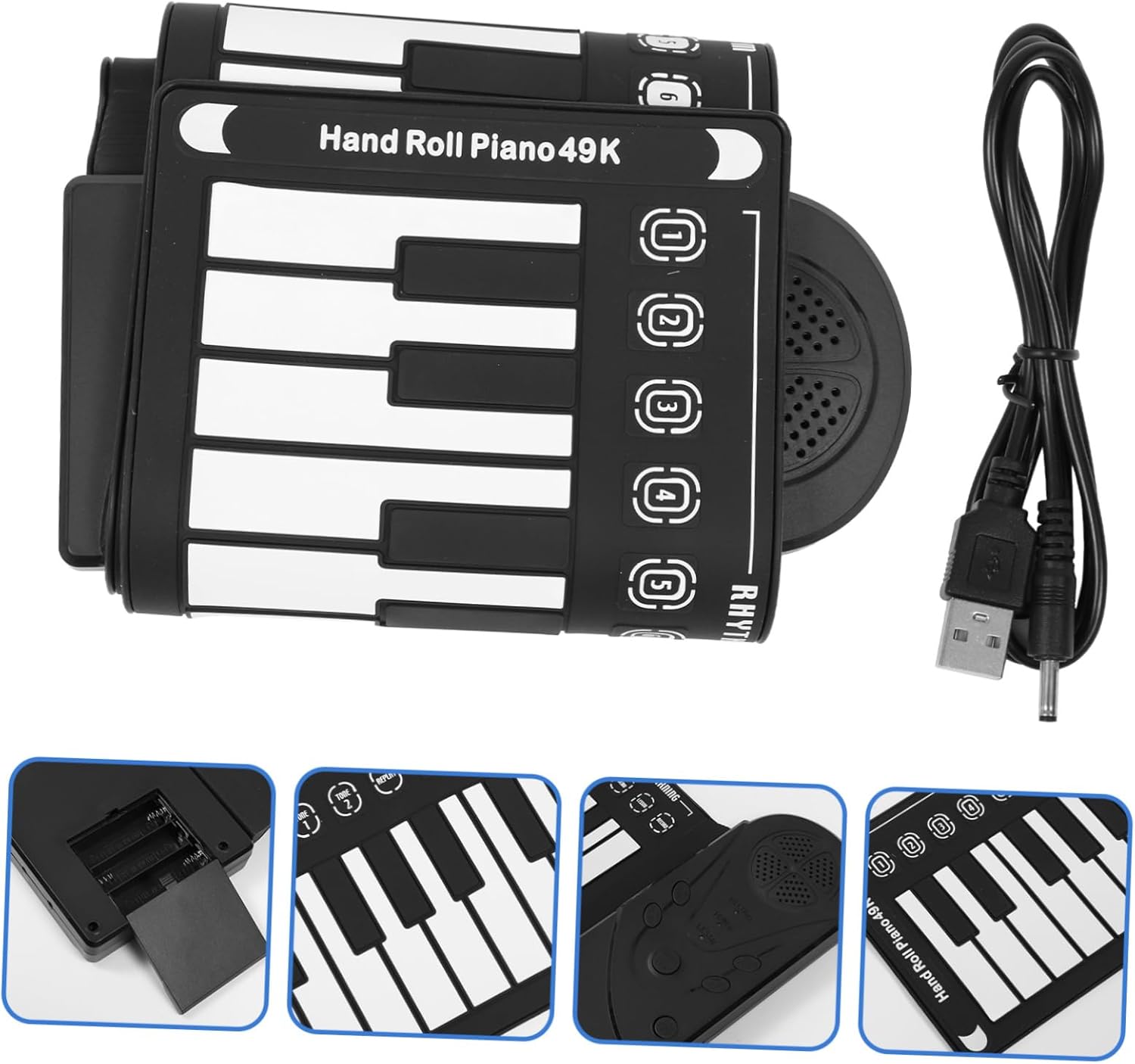 Package List 1 x hand roll piano 1 x manual 1 x USB charging cable 1 x paper box Features - Note: 3 AA batteries or 6V power adapter (Note: power supply and batteries are sold separately) Hand Rolled Piano - Size: 73.00X22.20X2.20cm/28.69X8.72X0.86in keyboard music. - Material: ABS Roll-up Music Piano. - The product has fine workmanship, reasonable design and creativity, which can bring you of joy folded piano. - Built-in 16 kinds of tones, 10 kinds of rhythms, 6 demo songs, for learning and enjoying classic songs small keyboard piano. - Its material is superior, it is not easy to fade or break, and it can be used for a long time electric piano. - There are function on the keyboard surface, which is convenient to adjust the rhythm you like hand-rolled piano. - The sound of the built-in speaker is mellow, crisp, and melodious, making the music you play more pleasant Hand Rolled Pianos.Goods Descriptionhand-rolled piano Can be used as a to your .electronic piano That’s because our product can satisfy your need.roll-up piano keyboard If you are looking for a practical and roll up piano, then your research is over here.piano portable High durability, not easy to break.Roll-up Music Piano It will be a for you
