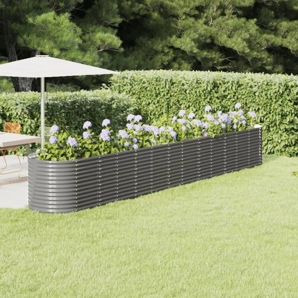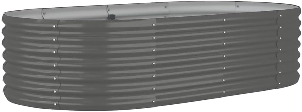 This garden raised bed would be a choice for DIY enthusiasts to decorate their gardens, balconies, or patios.Sturdy frame: Made of powder-coated steel and equipped with interior support brackets, this planter pot is exceedingly sturdy and durable.Premium material: The flower bed is powder-coated against. Therefore it is weather-resistant and very practical for outdoor use.Ample space: The garden raised bed is deep and wide enough to hold a large amount of soil and provide ample space for your plants, vegetables, herbs, and flowers.Color: GrayMaterial: Powder-coated steelDimensions: 59.8" x 31.5" x 14.2" (L x W x H)Oval shape planterAssembly required: Yes