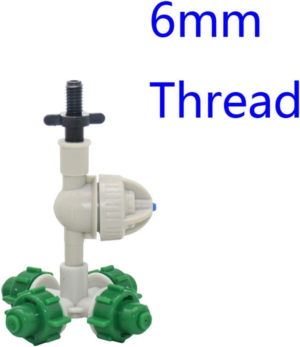 Easy to use-connect the water connector to the connectorMaterial: environmentally friendly plasticConnection size: 1/4 inch barb, 6mm threadThe specifications of the rotating nozzle are as follows:Pressure: 1.5-3 kgFlow rate: 35-40 L/HSpraying radius: 0.9-1.1 metersCross sprayer: 30setUses: Mainly used for fruitless, seedling irrigation, garden flowers watering and greenhouse coolingnote:The size is measured manually, please allow slight measurement errors.
