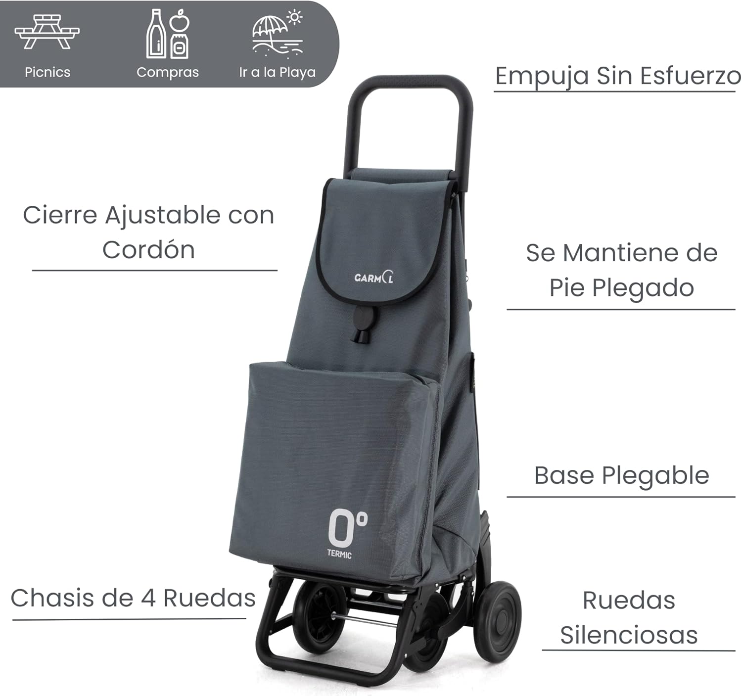 Garmol G5 Travel Thermal Shopping Cart Grey It has wheels and helps transport shopping much easier. This type of product is lightweight, compact, easy to store and carry.