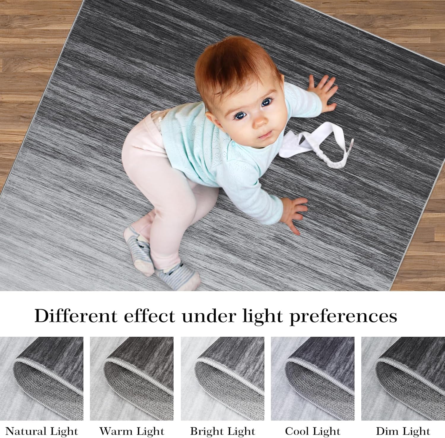 Enhance any room with the GarveeHome Modern Washable Living Room Rugs!Our collection features a variety of traditional and classic designs in a range of colors and sizes to suit your unique taste and complement your home decor. Choose from bold or neutral hues to create the perfect ambiance.Crafted from high-quality, shed-resistant polyester, our rugs add a touch of beauty and durability to your space. Ultra-soft low pile surface make this contemporary rug comfortable and soft to touch - great to step on it! Keeping your soles warm and relaxed when walking barefoot! Safety first with non-slip backing, ensuring the rug stays firmly in place even in high-traffic areas. Kids & pets friendly!Keeping your rug clean is a breeze, with easy maintenance for messes caused by children and pets. Simply wipe local stains with a wet rag and use a vacuum cleaner for daily upkeep. Deep cleaning is also possible, with the option to machine wash the rug, ensuring it remains fresh and clean. Allow the rug to air dry completely post-wash for optimal results.Please note:1. Package included: 1 pcs modern gradient area rug.2. Temporary creases may occur upon rug arrival, allow time for creases to flatten.3. Rug colors may vary slightly due to monitor differences.