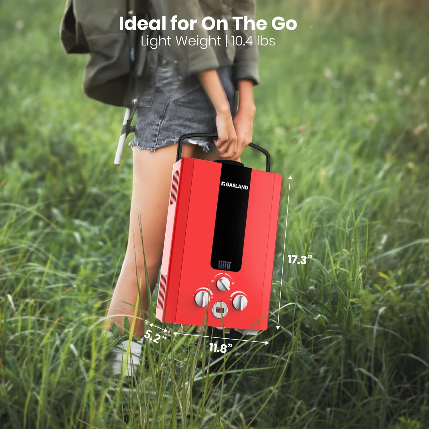 GASLAND Outdoors Tankless Water Heater Propane,1.58GPM 6L Portable Gas Water Heater, Overheating Protection, Easy to Install, for RV Cabin Barn Camping Boat, Red