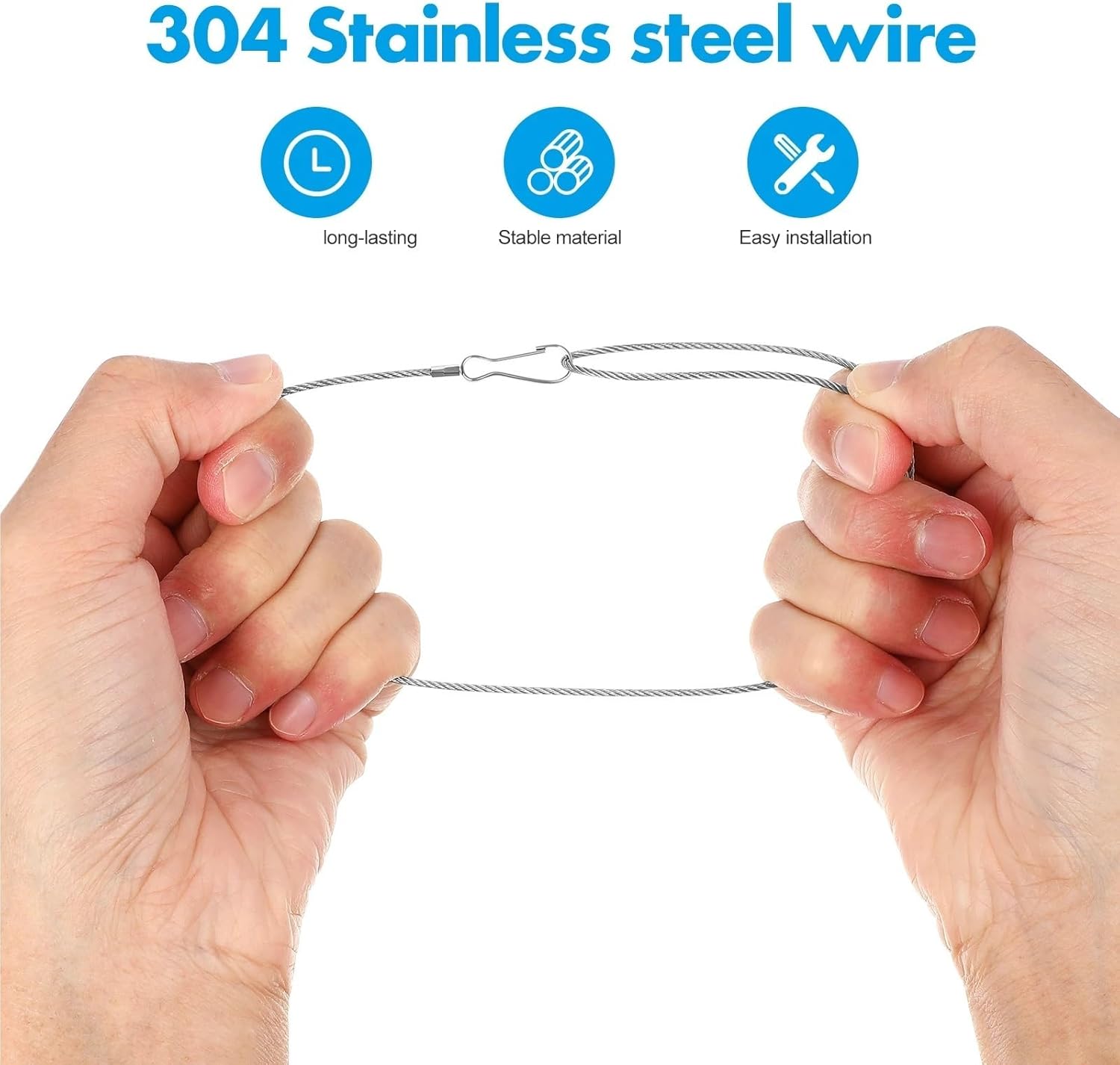 - Color: Silver- Material: 304 Stainless steel- Size: 31.00 x 4.00 x 0.15 cm / 12.18 x 1.57 x 0.06 inches60x Gate latch cables