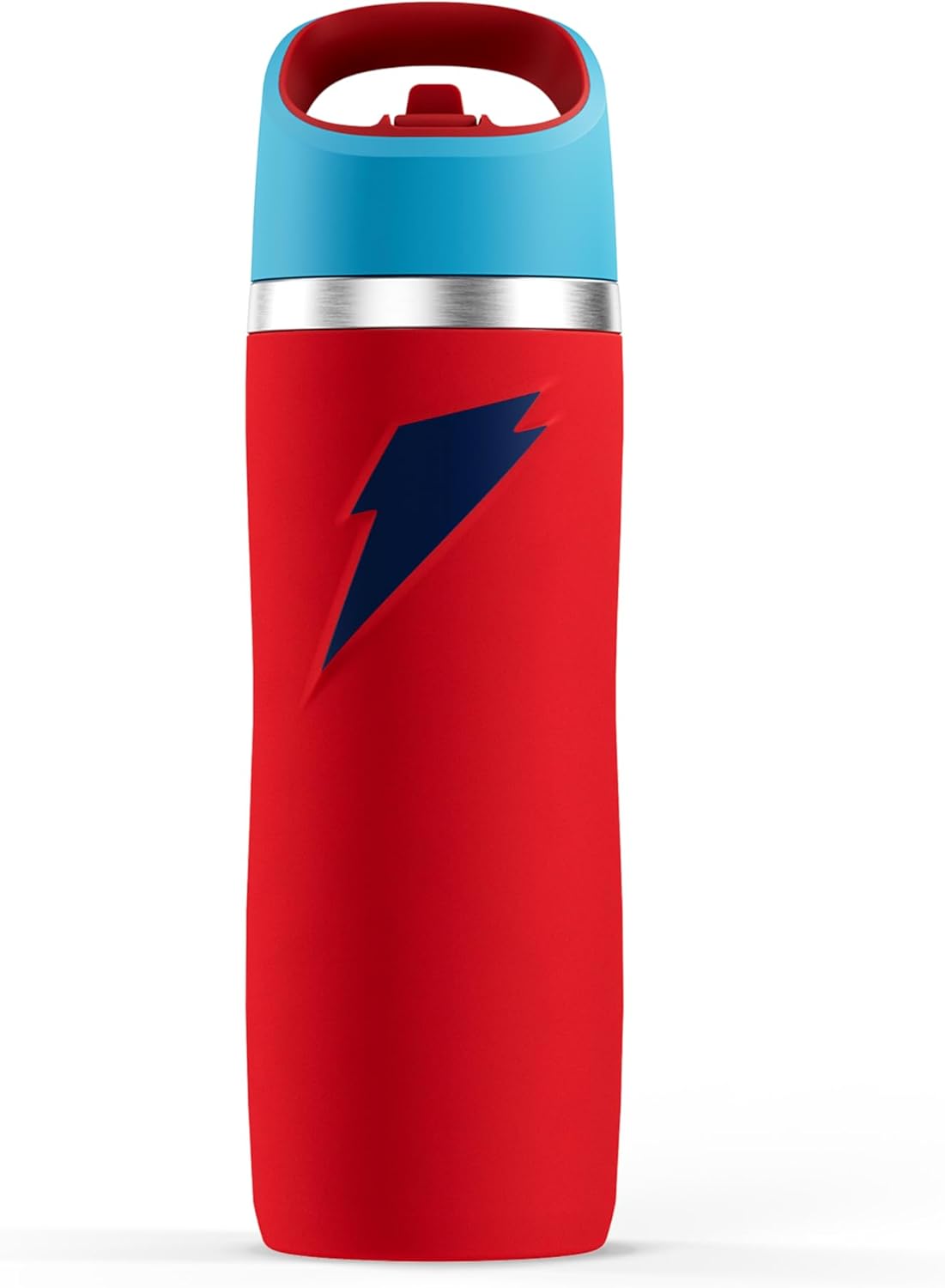 Includes 1 (22 oz) Gatorade Overtime Stainless Steel Reusable Water Bottle, Coral Straw Cap. Stay hydrated all-day with the Overtime 22oz Stainless Steel Bottle. Customize your drinking experience with either a straw or wide-mouth screw cap.