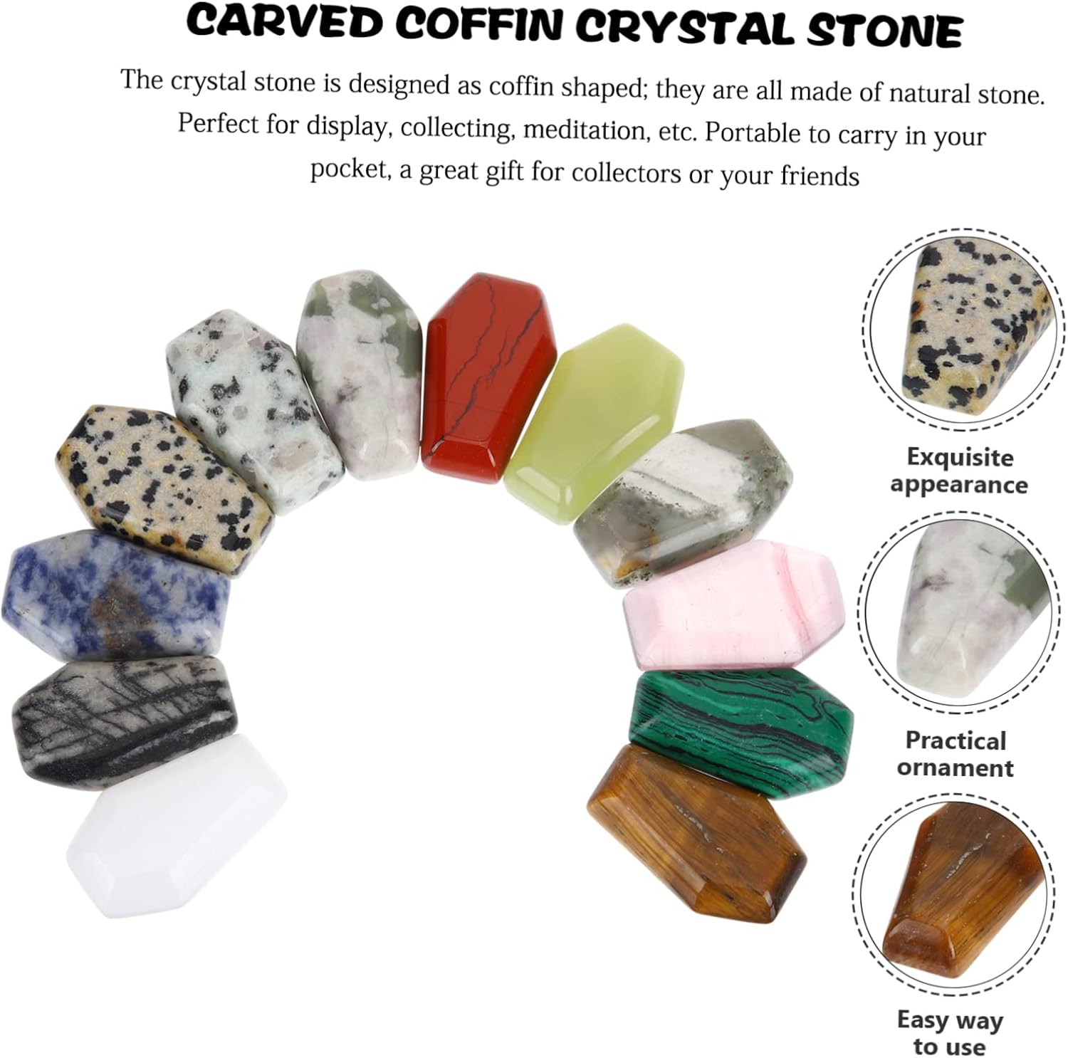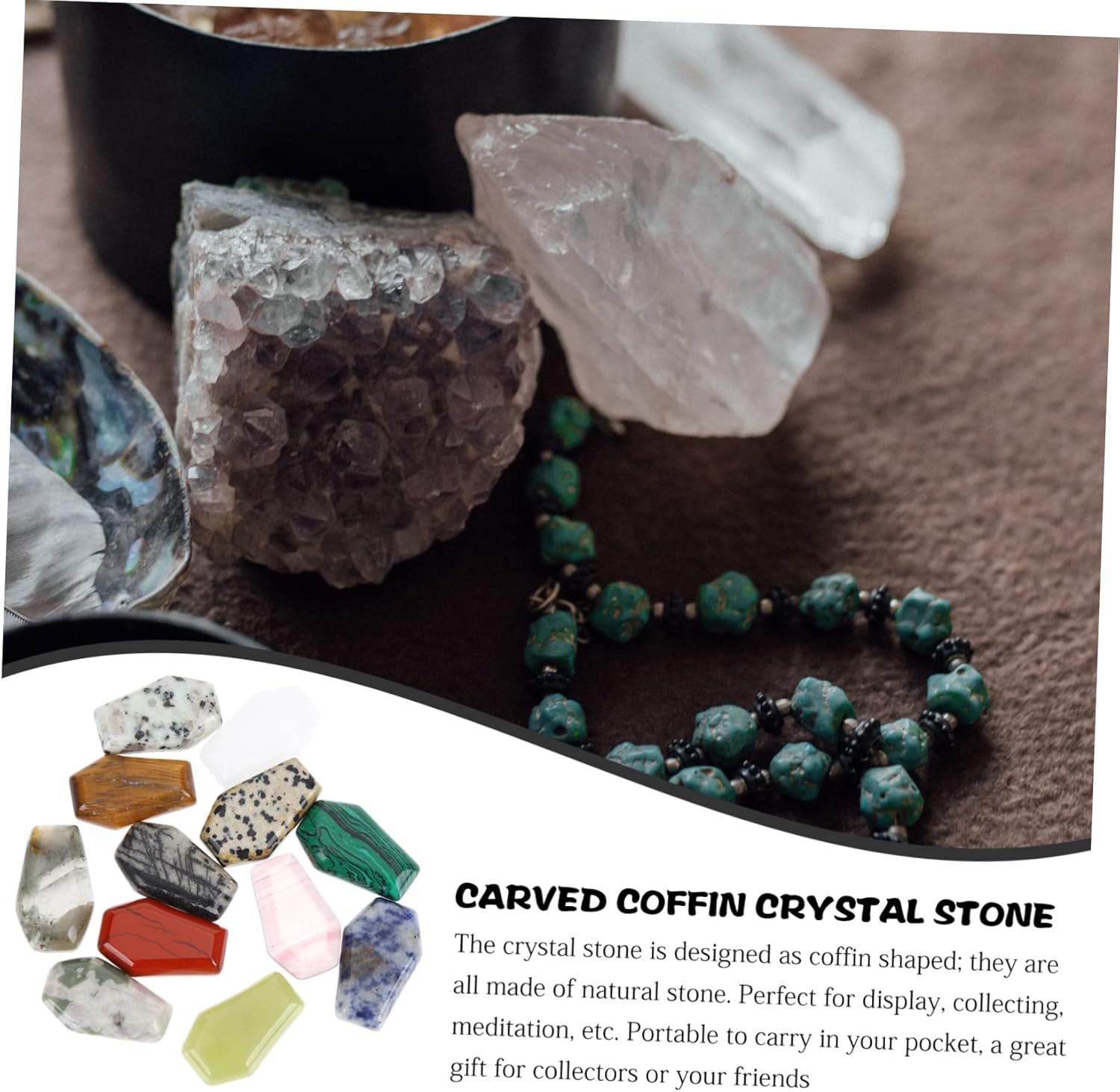 Package Include x Crystal stones Characteristics -Size:3.00X1.50X0.70cm/1.18X0.59X0.28in stones and crystals -Color:Assorted Color meditation stones decor -Material:Stone collection stone -The crystal stones are wonderful decorations for living room, study room, office, hotel, bedroom, etc stone crafts. -Not only crystal stones are home decorations, but they are also wonderful holiday present. Suitable for jewelry crafts making crystal stone present. -The quantity is enough to share with your friends and family as they are wonderful desktop decorations for home crystals meditation stones. -Excellent workmanship and fine details ensure their popularity and durability. Small and lightweight, easy to carry meditation stones. -Made of crystal stones, these ornaments are durable and have coffin shape and elegant colors delicate crystal stone.Goods Descriptiondesktop ornament Portable to carry in your pocket, a great collectors or your friends. stone for display, collecting, meditation, etc.crystal stones The crystal stone is designed as coffin shaped; they are all made of stone