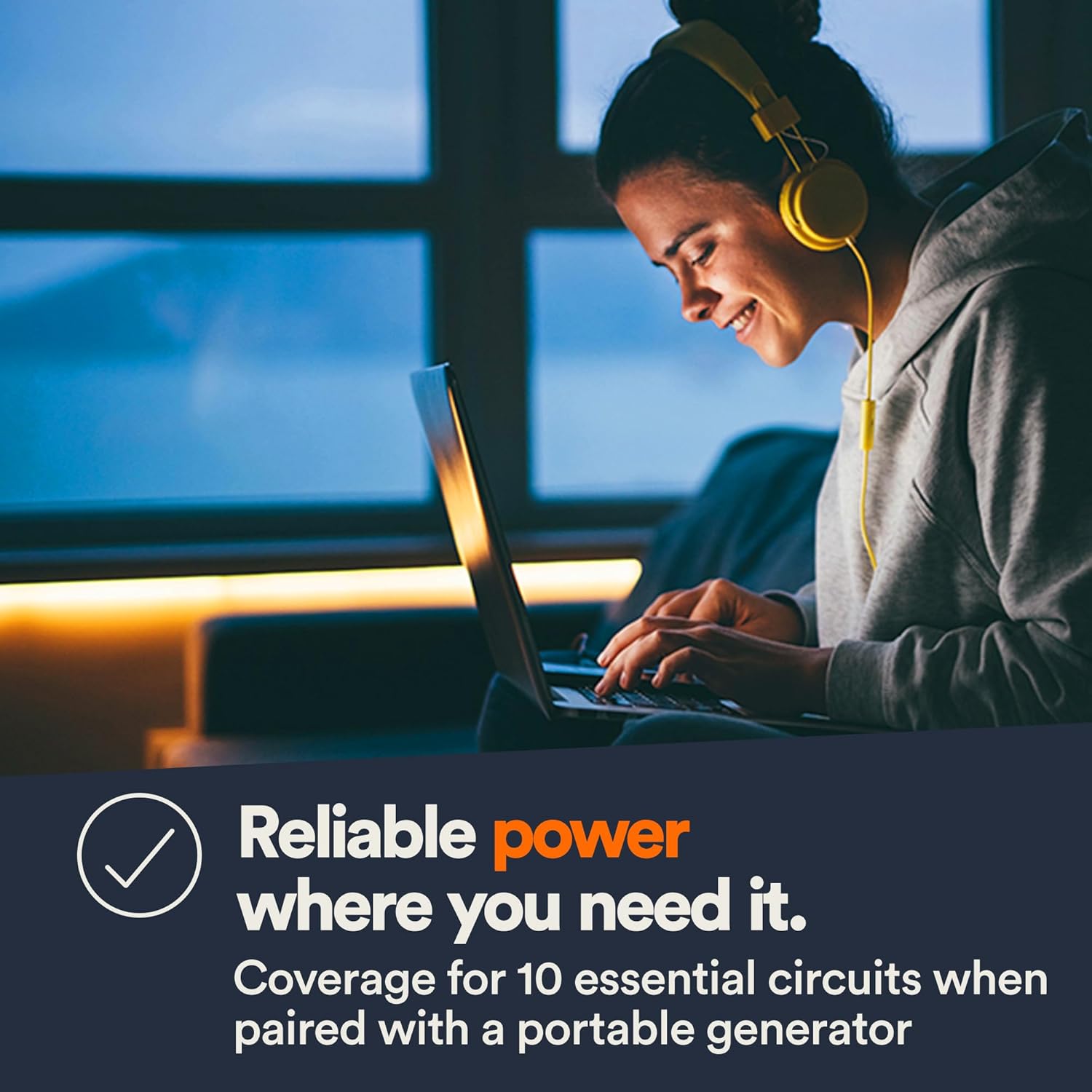 Optimized Description: Power more of your home during outages with a 50 amp HomeLink manual generator transfer switch. The pre-wired indoor panel connects near your breaker box and lets you move selected circuits from utility to generator with a push-button rocker. Indicator lights confirm source availability, the breaker system supports reconfiguration and expansion, and the HomeLink platform provides an upgrade path to automatic standby operation.
