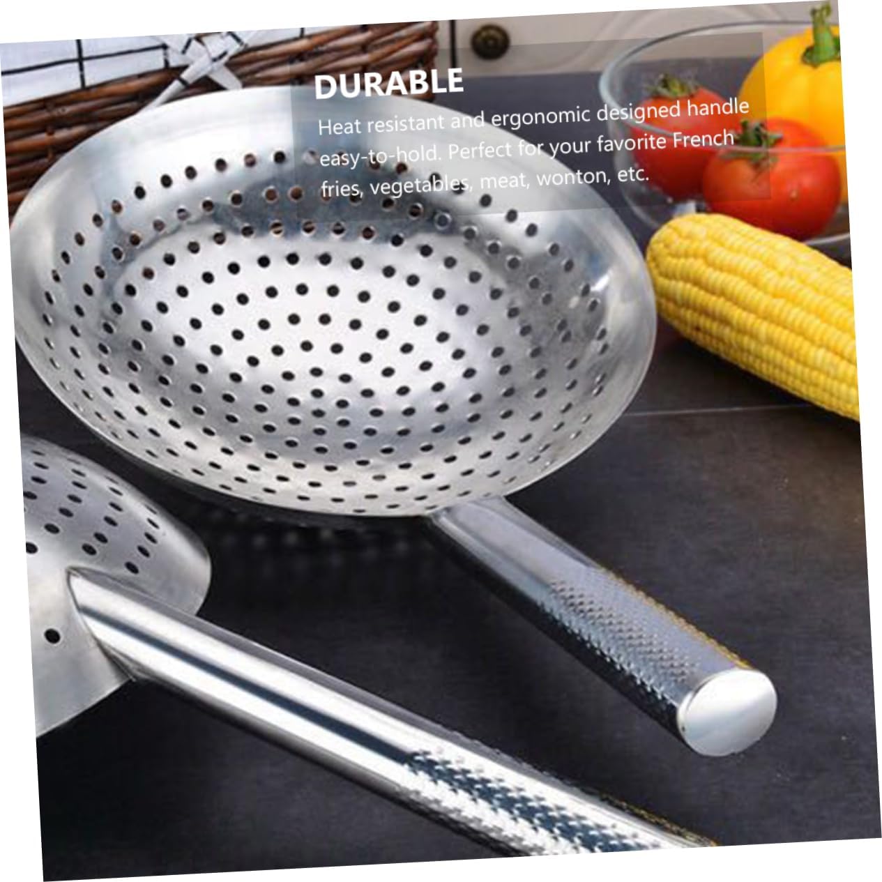 • French fries colander:stainless steel material, no deformation, in use,food serving spoon