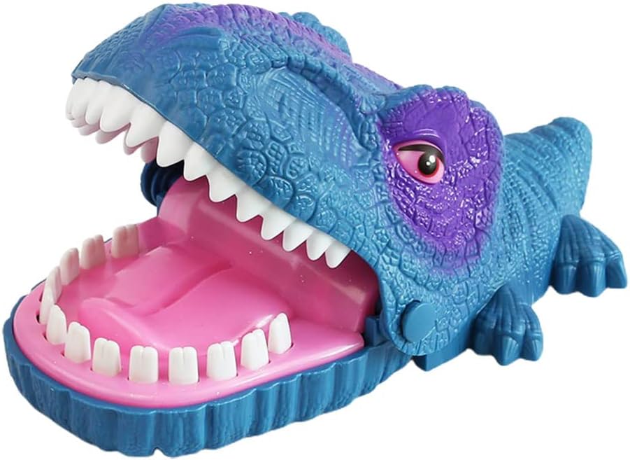Product description 1. 1. Games for kids - a classic that has been exciting and fun for decades. Here comes a new design, not the usual one, but a dinosaur bite. Recently added lighting and sound effects make this game even more exciting. 2. 2. Learn how to be effective: reflexes and speed are required to win the game. Proceed sequentially, with the player pressing one tooth after another. Be careful if the player takes the "wrong" tooth, as the dinosaur will break at a fast speed! 3. 3. FUN: Fun for the whole family, at parties or as a fun drinking game. Also works as a substitute for rock paper-papers. Action packed skill game. Improve the reaction rate. 4. 4. Material This dinosaur toy is made of ABS material, the teeth are made of soft rubber, it does not hurt when bitten, tasteless and safe for children. Requires 2 AA batteries (not included). 5. 5. EASY TO CARRY - Measures 23cm*9.5cm, which is for table setting up and can still be taken anywhere. Specification: Material: plastic. Colour: blue. Size: 23cm*9.5cm Power supply: 2 x AA batteries (not included) Packagelist: 1*Dinosaur Toy Note: Due to lighting effects and angles, there is a color difference in the product, please understand. Due to manual measurement, there is a tolerance in the product size. Manufacturer Contact Information 1 x