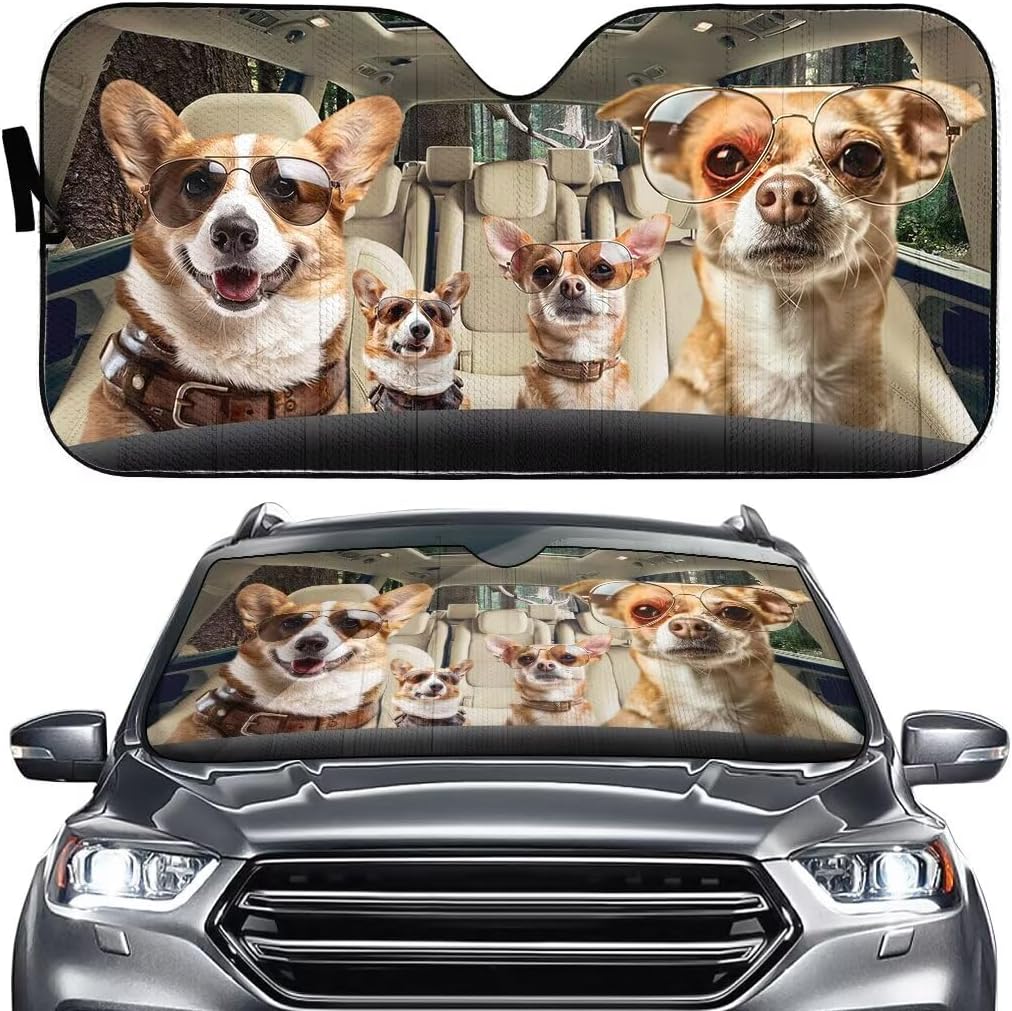 SWEATY OR MISERABLE? Ever opened your door to a blast of hot air in your face?*Printing: One-sided printing,which can help you quickly spot your car in parking lot.*keep the car cool by blocking the sun - it protects from sun damage as well.Protects LCD screens, GPS devices, and other electronics.*Eliminates dashboard fade and cracks.*Sunshade has 4 holes and 5 suction cups to keep it in place.*Compact folding design allow for easy storage in glove compartment or door pocket.An necessary automotive windows cover in hot summer. Protect your family from getting burned or overheated in the car. Creating the most comfortable and cool car environment for them. Protecting your beloved car and blocking the sun rays effects.auto sunshade front window windshield driver car interior cover dog family sun shield block suv truck anti-UV animal pattern car internal protection heat insulation cool down