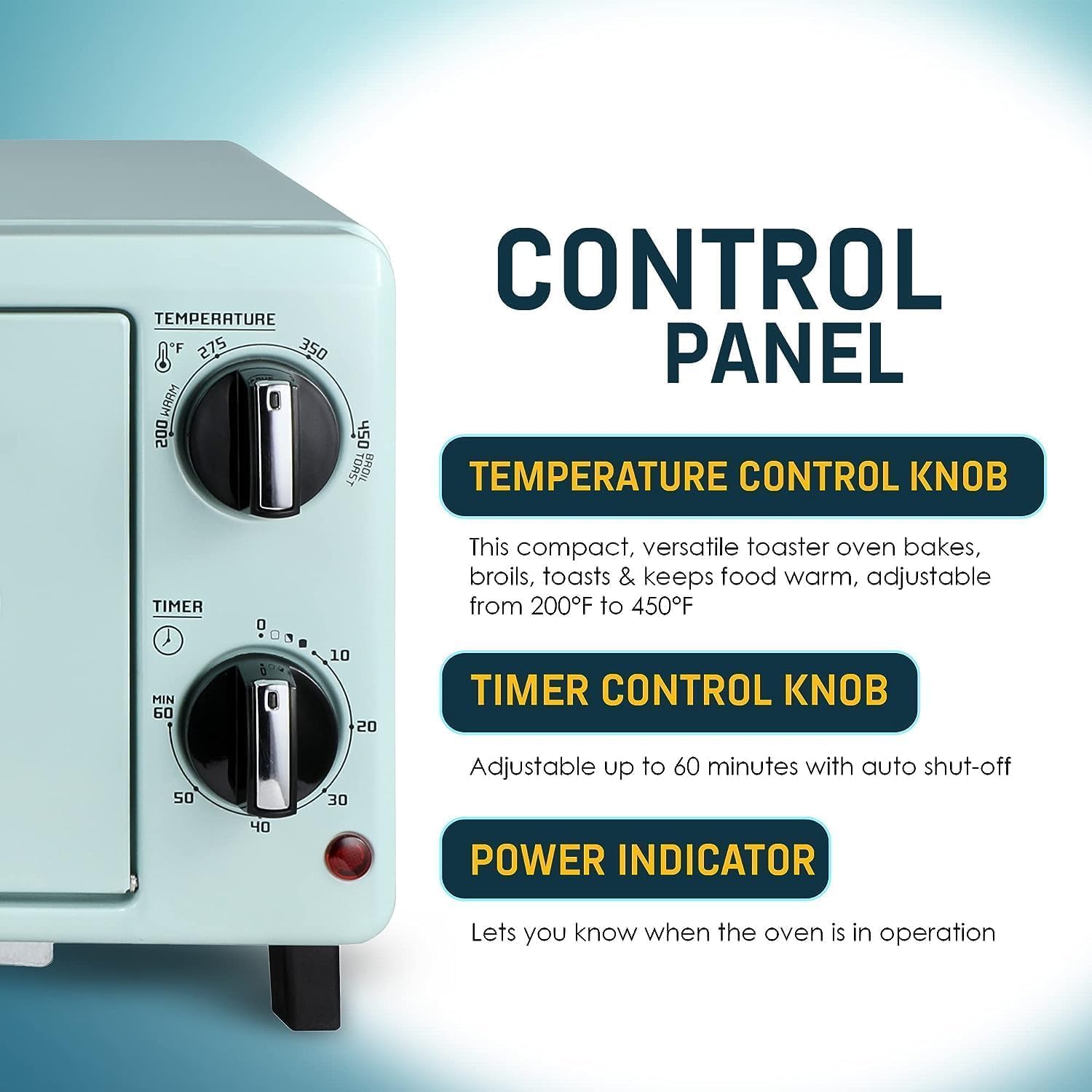 The Rtro style 2-Slice Toaster Oven provides a sleek, elegant and vintage look for your nostalgic kitchen. The 10L capacity is large enough for cooking meals for 2 without taking up a lot of your kitchen counter space.
