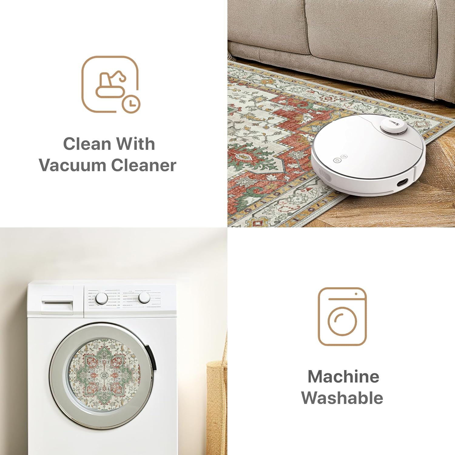 | Product Care Instructions | Our rugs are packaged in a folded form, upon receiving your rug, gently fold it in the opposite direction to help restore its flatness, then lay it flat on a clean surface and place heavy objects (such as books or furniture) on top for at least 24 hours to allow the creases to gradually disappear and the rug to regain its smooth appearance, Our rugs is machine washable, please use a gentle cycle with cold water and do not use bleach or harsh detergents. After washing, air dry or dry on air-only cycle without heat |
