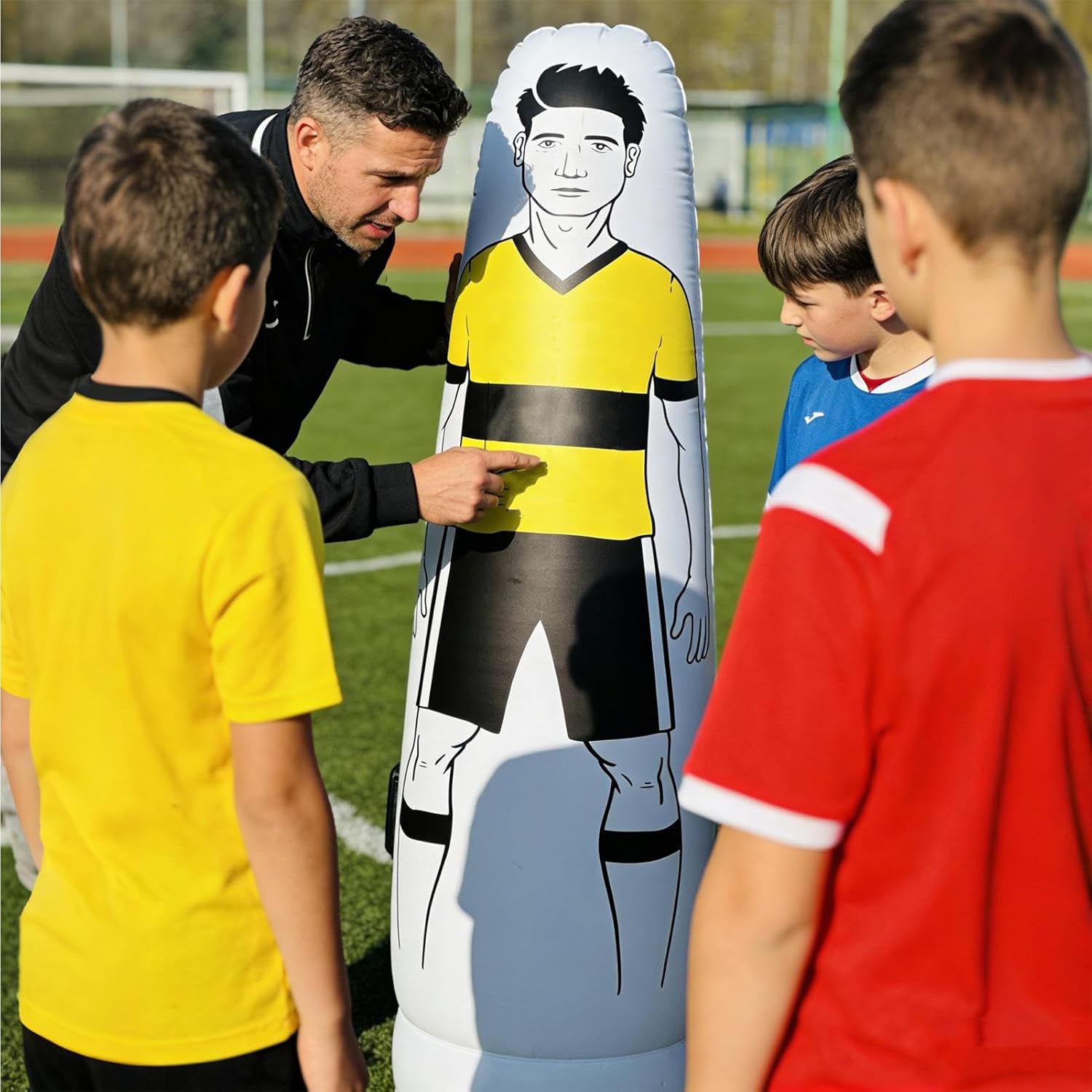 The Goalkeeper Defender Football Practice Wall is designed to improve agility practice for users of all levels from beginners to professionals. Made of durable PVC, ensures high protection and safety during intense workouts. This portable soccer practice wall is ideal for adults, teens, youth, kids and enthusiasts who want to improve their game. Supports a variety of exercises, helping players hone their skills as goalkeepers or defenders. Whether used in the backyard or in the field, this durable training tool offers versatility and reliability for consistent performance. The material and construction ensures extended use while maintaining portability for easy transport. your practice routine with this football training aid, suitable for both casual play and serious skill development. Specification Material: PVC. Dimensions: Yellow:160cm/63inch : 175 cm/68.9 inches. Red: 203cm/79.92inch Weight: about 1500-1750g List Football kick defender*1 Note: 1. Due to lighting effects and viewing angles, there may be color differences in the product. 2. Due to manual measurement, there may be errors in the product size, please understand.