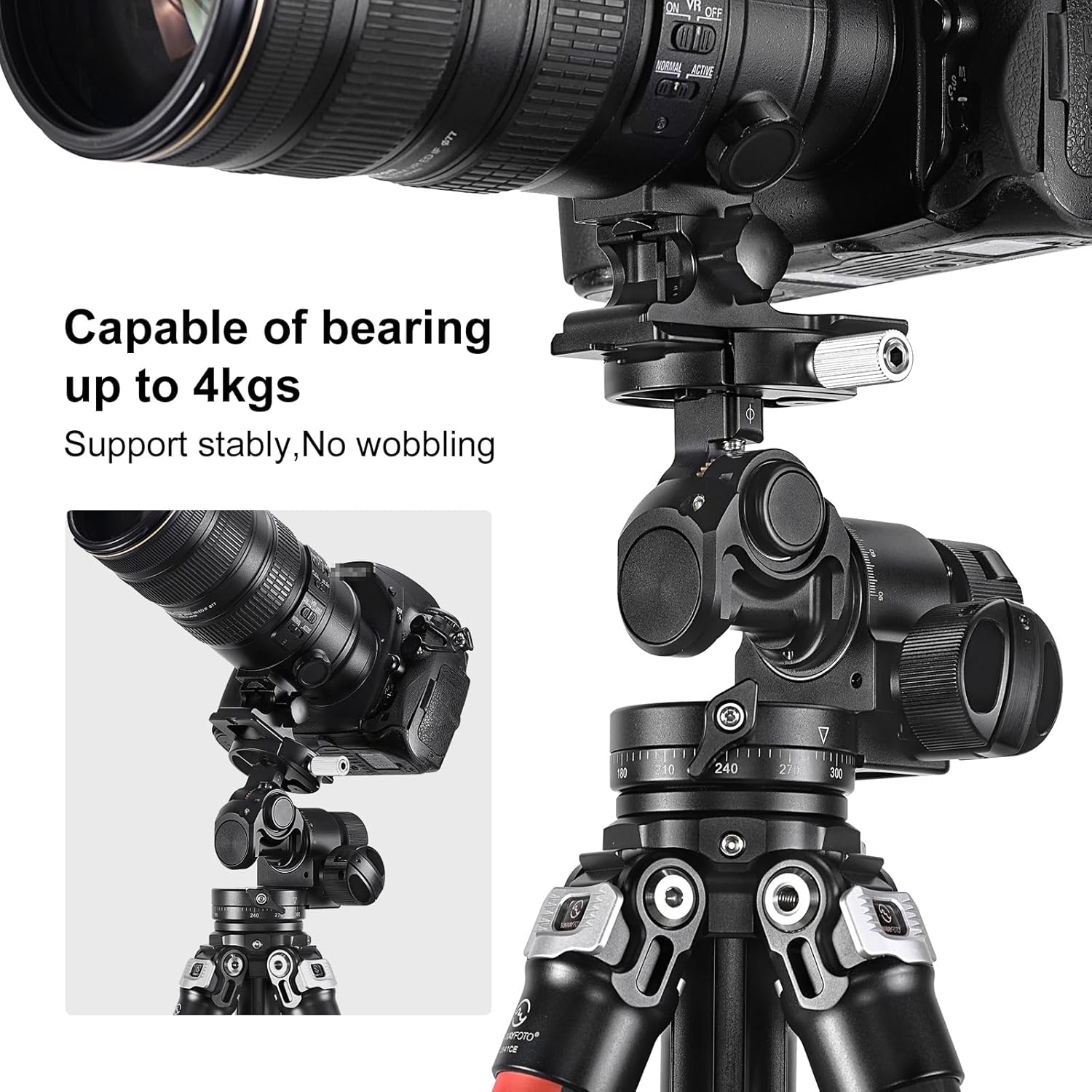 • Easy to position. Exquisite gear drive ensures easy composition of a photo without locking the head.