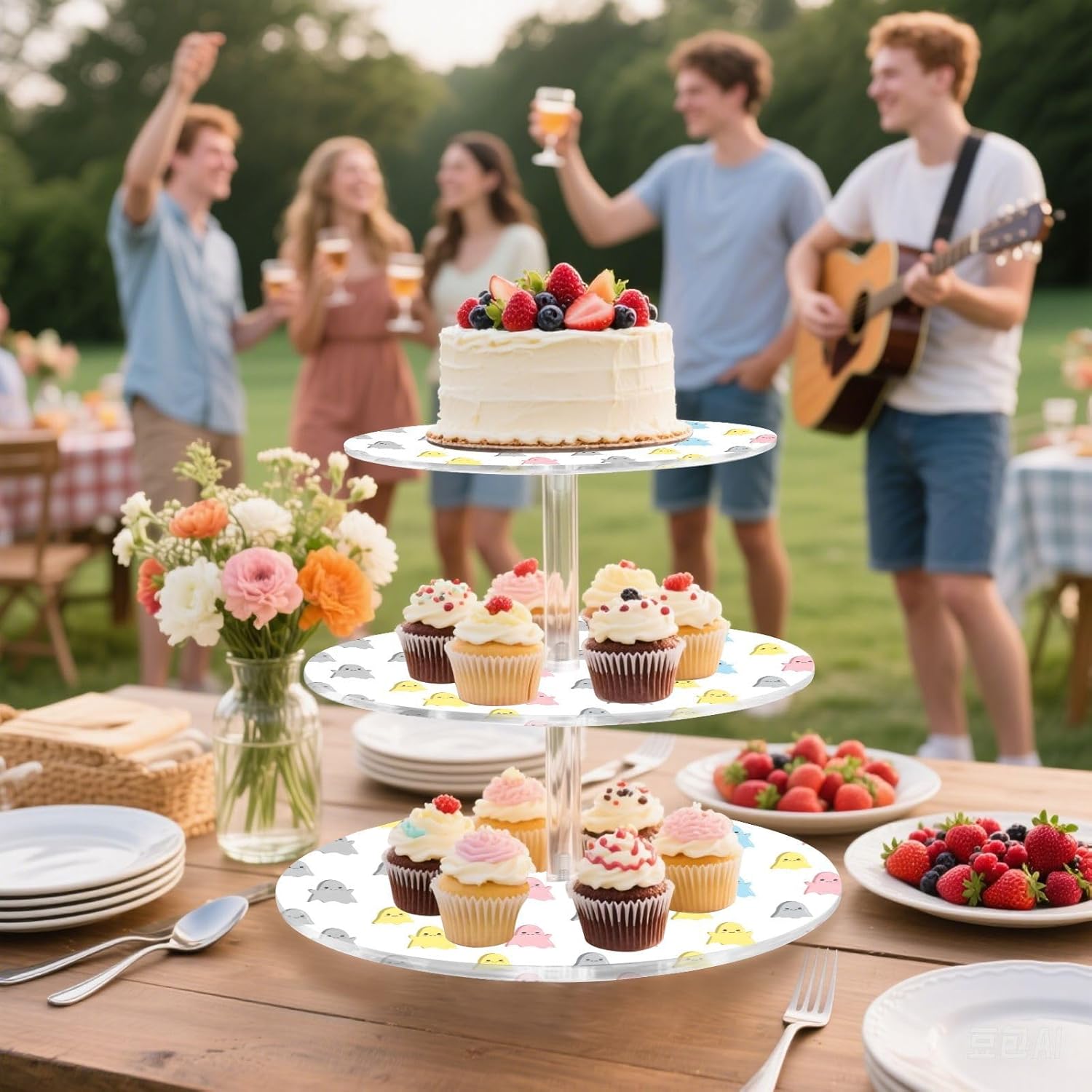 3 tiers round cupcake stand,acrylic cake tower stand holder macaron display rack cookie candy buffet desserts platter with non-slip and stable base for wedding, birthday, theme party. Due to the difference between different monitors,the picture may not reflect the actual color of the item,Please allow the slight color difference! We always doing our best to provide the best service and reliable products for every customer,Thank you very much! Have a good day!