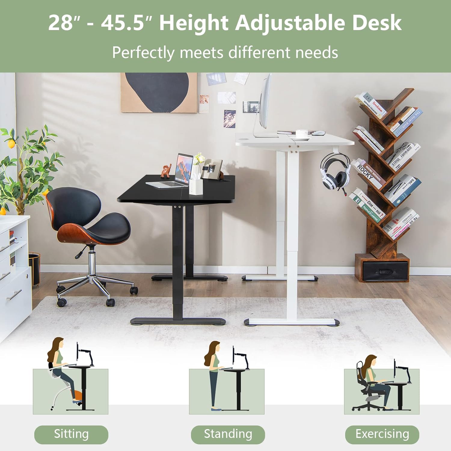 Description: Get a height adjustable standing desk and start healthy lifestyle. This electric desk brings you adjustable height to ensure comfortable sitting and standing, and allows you to exercise while working, effectively protecting spine and improving work efficiency. Besides, coming with a smart sensor, the sit to stand desk is protected from bumps and scratches during movement. Premium board and metal offer a sturdy and durable construction, and the adjustable pads ensure great stability. This electric computer desk has a classic look and is ideal for home and office use. Features: Up/ down movement for adjustable height and heathier working style Ideal for sitting, standing or exercising mode, perfect meets different needs Smart anti-collision technology protects desk and items from damage 44" x 24" spacious desktop nicely keeps daily items and offers you ample work space Quiet movement keeps your focus and avoids disruption Sturdy metal bracket ensures strong support and great stability Cable management hole for keeping cable order and neat Rounded corners protect people from damage to improve safety Specifications: Color of Tabletop: Black/Rustic Brown/Natural/White Color of Frame: Black / White Material: Engineered Wood, Metal Overall Dimensions: 44" x 24" x 28"-45.5" (L x W x H) Width between Bottom Base: 30.5", 36" Length of Bottom Base: 23" Low Noise <52dB Lifting Speed: 21mm/s Weight Limit of Tabletop: 180 lbs Net Weight: 46 lbs Package Includes: 1 x Standing Desk 1 x Instruction Why do you choose our computer desk? √This electric desk offers adjustable height, helping you keep healthy. √The standing desk is easy to be controlled, greatly saving hassle.