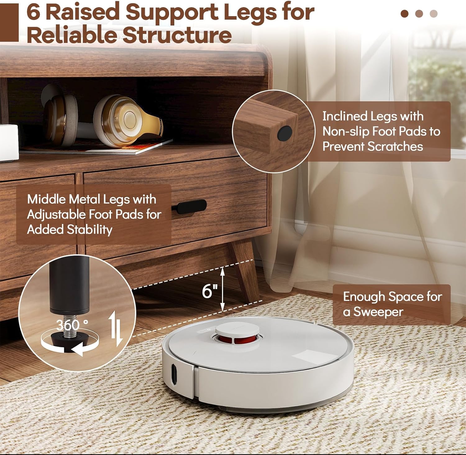 Description:Elevate your entertainment area with this TV stand!The spacious tabletop is designed to hold televisions up to 70 inches with ease. Featuring 3 drawers and open shelves, the TV cabinet provides ample storage to organize media devices and display decorations neatly. Besides, the integrated cable management system keeps cords hidden, maintaining a clean and streamlined look. Supported by 6 sturdy legs—including adjustable foot pads on the central supports for enhanced stability—this media console offers durability and balance. Finished in a rich wood grain, the entertainment center adds warmth and elegance, becoming a standout piece in any living room or bedroom.Features:Wide tabletop is suitable for flat screen TVs up to 55"/60"/65"/70"3 open compartments and 3 deep drawers for classified storage space Equipped with 6 raised support legs for reliable structureMiddle metal legs with adjustable foot pads for added stability Inclined legs with non-slip foot pads to prevent scratches 6" off the ground provides enough space for a sweeper3 cable management holes keep wires organized and hidden for a clutter-free setupMid-century modern design blends well with various home stylesRounded corners and considerate details for better user experienceSmooth slide rails and convenient handles for effortless drawer operationAssembly neededSpecifications:Color: WalnutMaterial: Engineered Wood, MetalOverall Dimensions: 59.5" x 16" x 21.5" (L x W x H)Inner Size of Drawer: 16.5" x 11" x 4" (L x W x H)Dimensions of Each Compartment: 19" x 15.5" x 5.5" (L x W x H)Raised Height: 6"Net Weight: 75 lbsWeight Capacity of Tabletop: 110 lbsWeight Capacity of Each Compartment: 44 lbsWeight Capacity of Each Drawer: 11 lbsPackage Includes:1 x TV Stand1 x User ManualWhy You Choose Our TV Cabinet?√Wide tabletop supports flat screen TVs up to 70 inches√3 drawers and open shelves keep your media organized