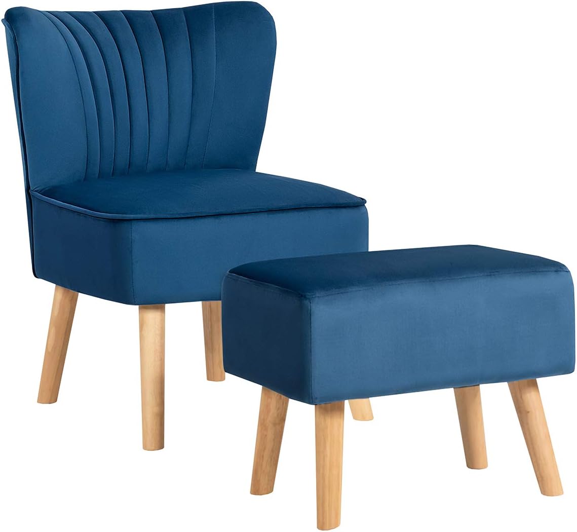 Description:Bolster the style of your seating area with a club chair and ottoman set of outstanding features. Covered with unique velvet upholstery, the chair and ottoman set brings a charming contemporary design to your house. The velvet fabric adds a touch of elegance and fashion, which makes it a string and eye-catching decoration, featuring luxurious look. Soft and comfortable touch will offer you leisure time. The backrest is padded with 1.5" thick cotton so as to give soft and comfortable support to your back, firmly fitting your body line. The combination of chair and ottoman makes a more comfortable position available. Whether you’re sitting or lying, the backrest and ottoman will provide soft and comfortable support, giving relief from tiredness. Additionally, featuring premium materials, the feet are made of rubber wood, which is durable and stable. Thanks to that, both chair and ottoman can bear the weight of 264.5lbs.Features:Safe and durable materials provide high qualityModern appearance makes it eye-catchingOttoman allows to lie down and take a breakRubber wood feet are durable and stableThe backrest and cushion are padded with premium cottonSuitable for different places such as living room, bedroom, etc.Easy assembly saves timeSpecifications:Color: Turquoise Material: Velvet Fabric+ Muti-layer Board+Rubber woodNet Weight: 23lbsDimension of Chair: 21.5" x 26.5" x 30.5" (L x W x H)Dimension of Ottoman: 19" x13" x15” (L x W x H)Load Capacity of Chair: 264.5lbsLoad Capacity of Ottoman: 264.5lbsPackage includes: 1 X Chair1 X Ottoman 1 X User GuideWhy You Choose Our Chair Ottoman Set?√ Modern design makes it eye-catching√Durable rubber wood is stable and firm