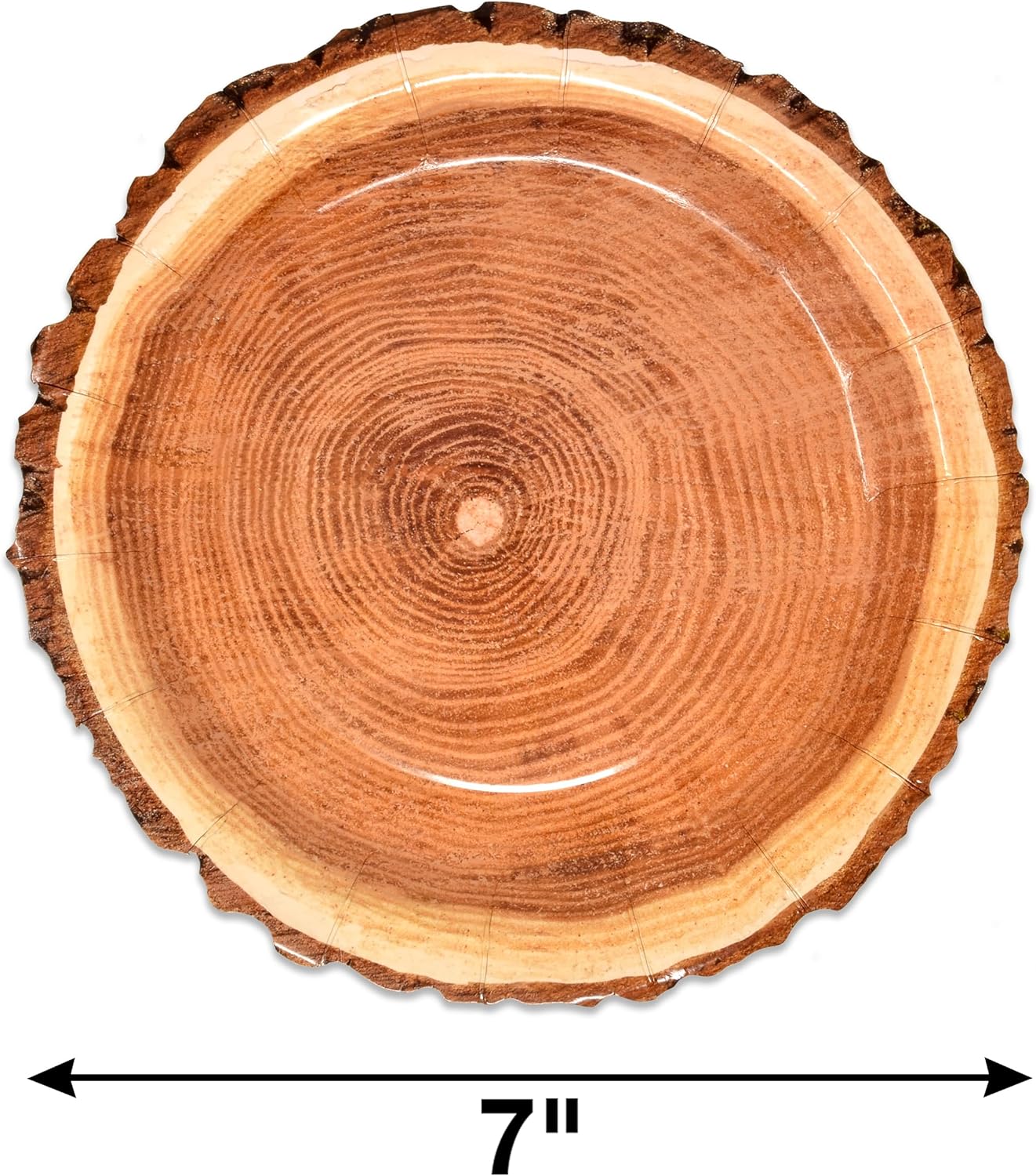Wood Slice Dessert Party Plates Serves 50: Gift Boutique wood slice plates set includes 50 7" dessert plates featuring a round wooden slice die cut edge design. High Quality: Plates are made of high quality thick paper. Great for a rustic woodland party. Do NOT place the plates in the microwave. The lumberjack party set really adds dimension to your parties as your guests will love the cute and fun design. Enough For Your Guests: Stock up with this set of quality plates to make sure you have enough for any timber themed party or event. This camping wood party plates is the perfect addition for baby shower, boys, girls, kids, teens, adults and any age birthday party, picnic, BBQ, summer fishing get-together, outdoor gathering, holiday, clubs and more! More Time To Enjoy: Disposable paper reduces clean-up time so you can enjoy more time with friends and family at this hunting nature themed party. After the wood party just collect the tablecloths with all the garbage and throw it into the trash can. Presto! Cleanup completed! Stock up with this set of quality plates to make sure you have enough for any bridal, baby shower, holiday party, or event of your choice!