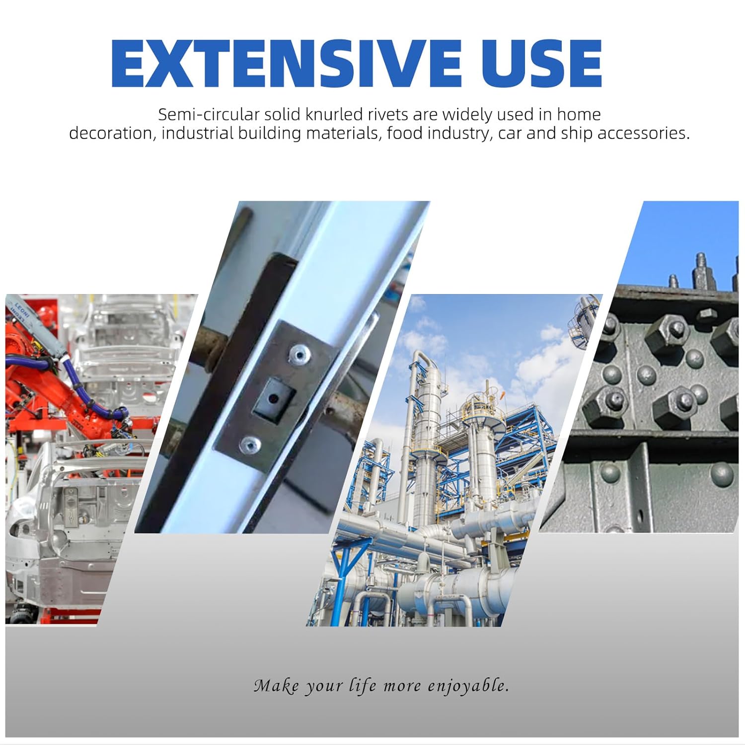Glarks 190Pcs Solid Rivets Knurled Shanks Set, M2 M2.5 M3 M4 M5 Semi-Round Head Solid Rivets Assortment Kit with Storage Box Home Outdoor Hardware Tool 🥇 [Specification]: ♥Product Type: Solid rivets ♥Material: 304 Stainless Steel ♥Color: Silver ♥Size: m2, m2.5, m3, m4, m5 ♥Quantity: 190pcs 🥇 [Product Details]: ☛ Solid rivets are the strongest rivets used in fastened joints. ☛ Semi-round head rivets can be hardened for some applications to improve strength and durability. ☛ Product size complete, a variety of sizes to choose from, save time. ☛This product is easy to install, which can be used for a long time, corrosion and rust prevention. ☛ Widely used for product labels, nameplates fastening and connection with objects. 🥇 [Package Included]: ♥30pcs x m2 x 3mm solid rivets ♥30pcs x m2 x 6mm solid rivets ♥25pcs x m2.5 x 5mm solid rivets ♥25pcs x m2.5 x 10mm solid rivets ♥20pcs x m3 x6mm solid rivets ♥20pcs x m3 x 12mm solid rivets ♥10pcs x m4 x 8mm solid rivets ♥10pcs x m4 x 12mm solid rivets ♥10pcs x m5 x 10mm solid rivets ♥10pcs x m5 x 16mm solid rivets ♥1pcs x storage box ♥Total: 191pcs 🥇 [Note]: ※All dimensions are measured manually, there may exist measurement errors, please don’t mind.