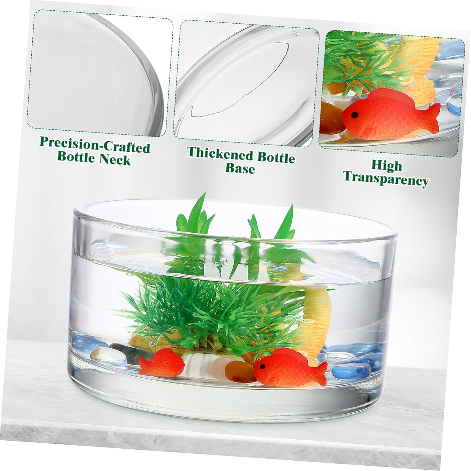 Package Include 1 x storage holder Features -Material:Glass tall glass vases -Size:15.00X15.00X8.00cm/5.89X5.89X3.14in - large-capacity flower vases for centerpieces -Color:Transparent glass planter Through the transparent glass, can also observe the growth state of plants, convenient planting glass bottle vase. - The mouth of the bottle is polished to make it round and smooth without hurting your hands hydroponic flower bottle. - Suitable for wedding, party, family gathering, banquet, dinner party and other occasions glass hydroponics vase. - Fashion and creative appearance, it will bring some beauty to any interior space simple vase. -The present of choice for any hydroponic enthusiast, show them that you love and care glass fish tank.Goods Descriptionglass vase Made of glass material for long term use, not easy to break and deform.large glass vases want a creative and decorative flower bottle? Our product will be your choice.hydroponics planter Also, it is a great present for your families, friends who loves planting flower or flower arrangement