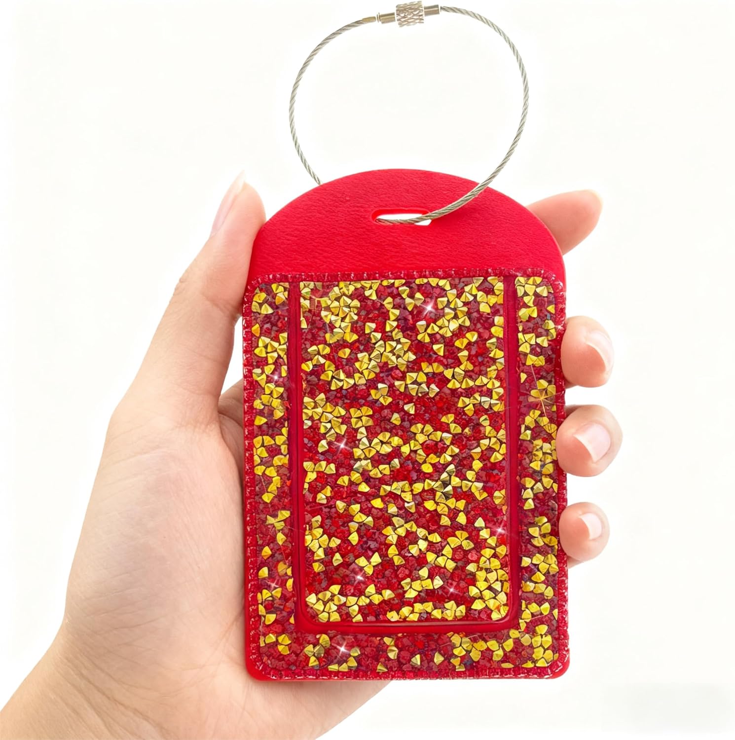 Enhance your travel experience with our luxurious leather luggage tag. Designed with the discerning traveler in mind, this tag features a robust stainless steel loop for secure attachment and a sparkling design that stands out with elegance. Not only does it add a touch of sophistication to your luggage, but its durable construction also ensures it can withstand the demands of travel. Whether you're navigating busy airports or storing your luggage, this tag remains visible and intact, making it a practical and stylish accessory for all your journeys. Moreover, this exquisite leather luggage tag serves as a thoughtful and practical gift for friends, family, or colleagues who love to travel. Its unique sparkle and quality craftsmanship make it a memorable gift for birthdays, holidays, or as a special token of appreciation.