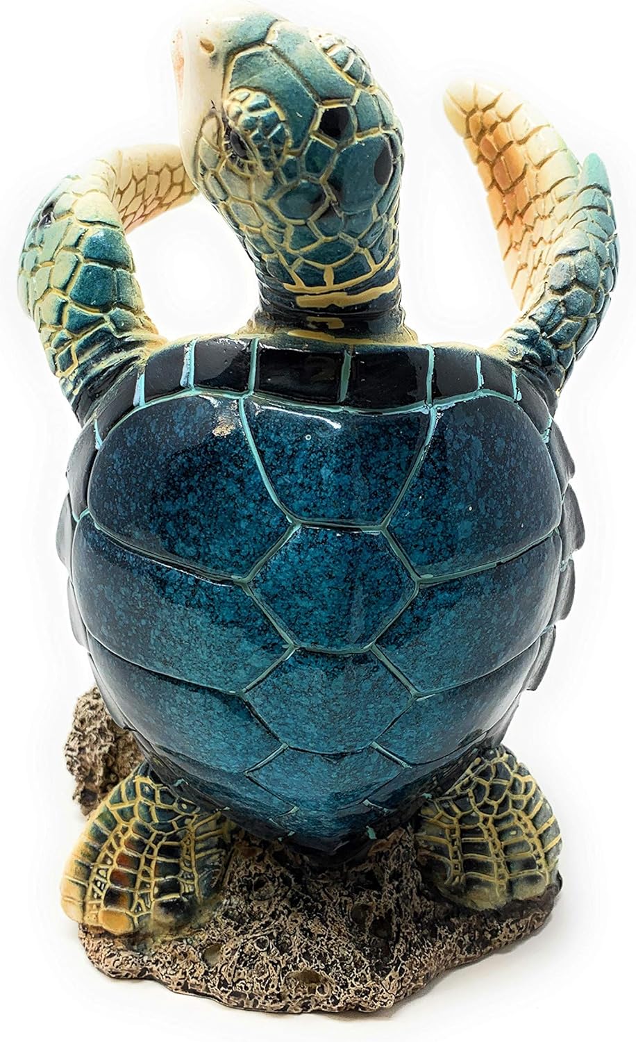 Let this fun little sea turtle lighten your load and prop up your favorite bottle of wine or spirits. This colorful polystone with lacquered finish turtle holds a standard size wine bottle and would make a whimsical addition to your kitchen counter, dining table, party set up, or bar. Measures approximately 8"H.