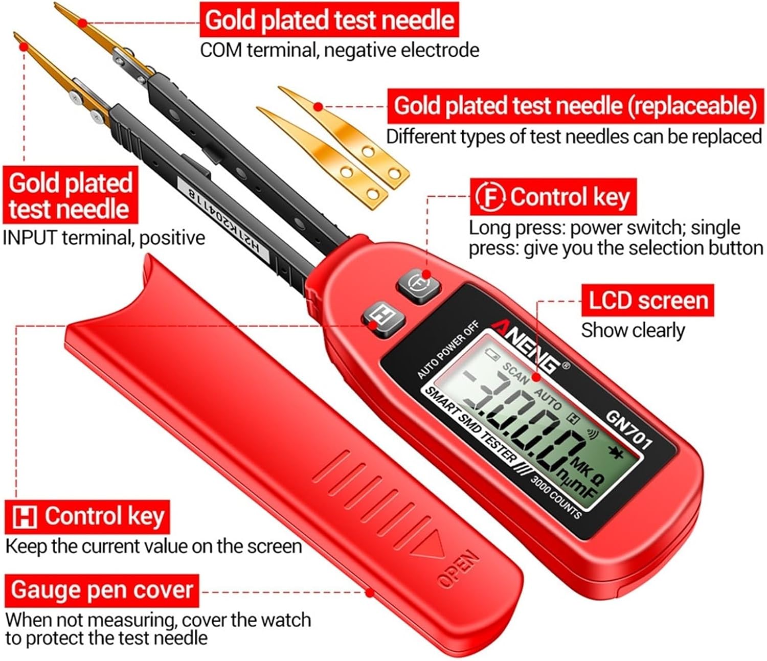 • GN701 Digital Smart SMD Tester Electrical Multimeter Resistance Capacitance Continuity Diode Test Meter Electrician Tools