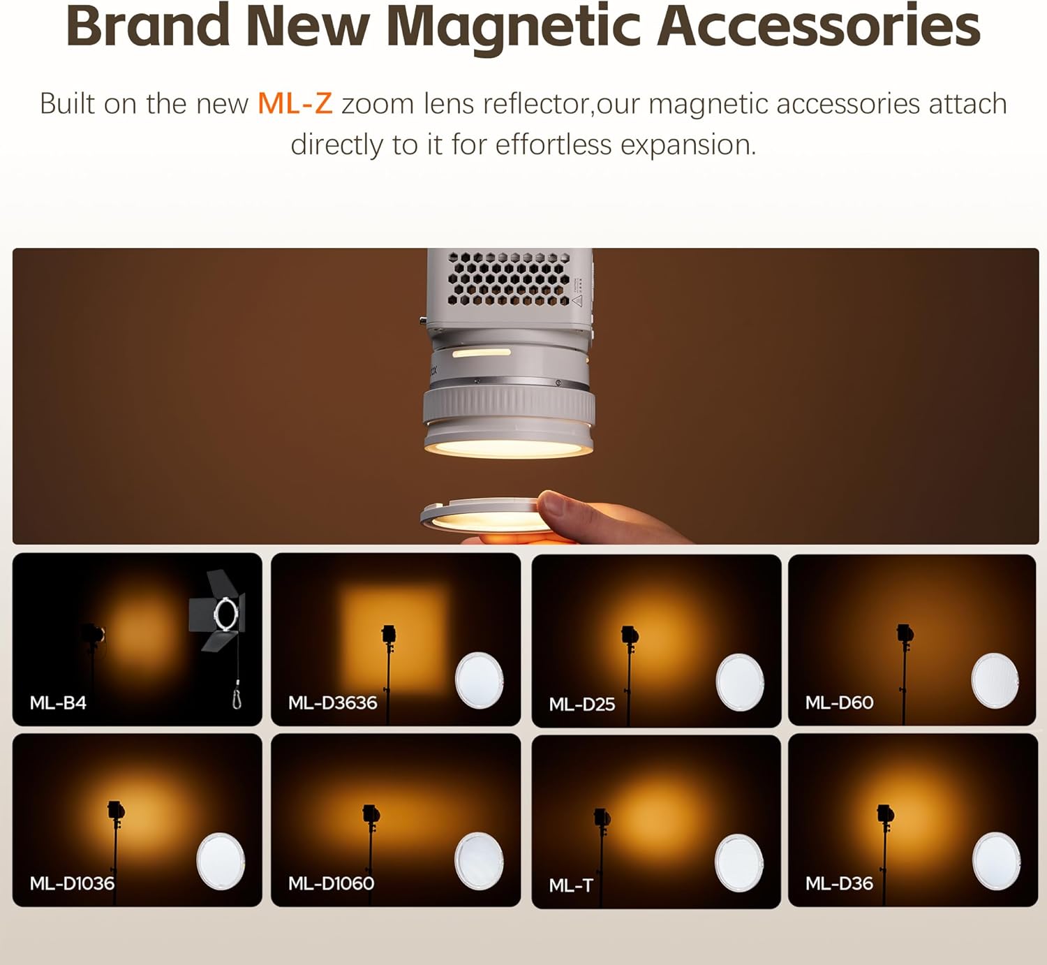 | BuiltIn Media | Adapter x1,Storage Bag x1, Holder AD-E2 x1, Power Cord x1,V-Mount Battery Adapter Plate ML-VMA x1, Protective Cover x1,Zoom Lens Reflector ML-Z x1 |