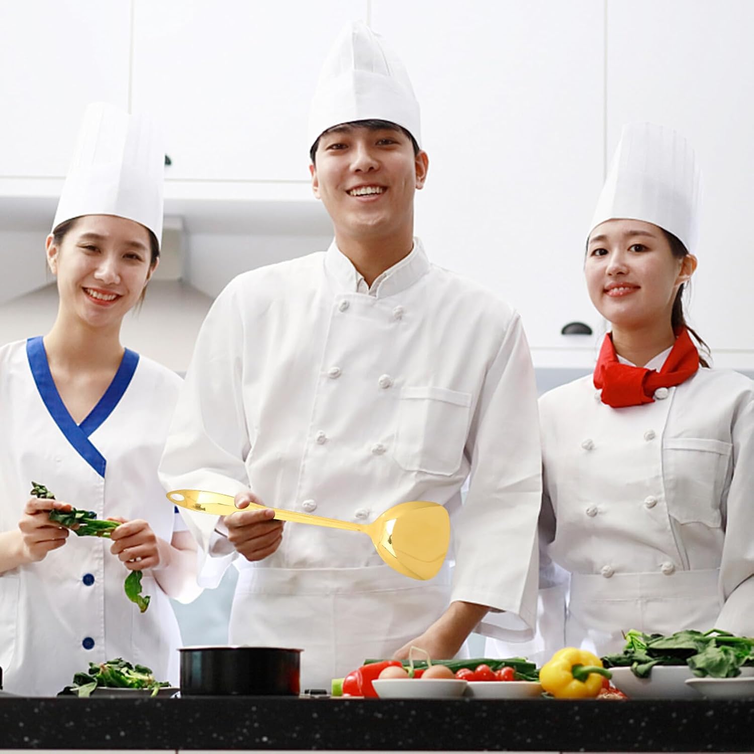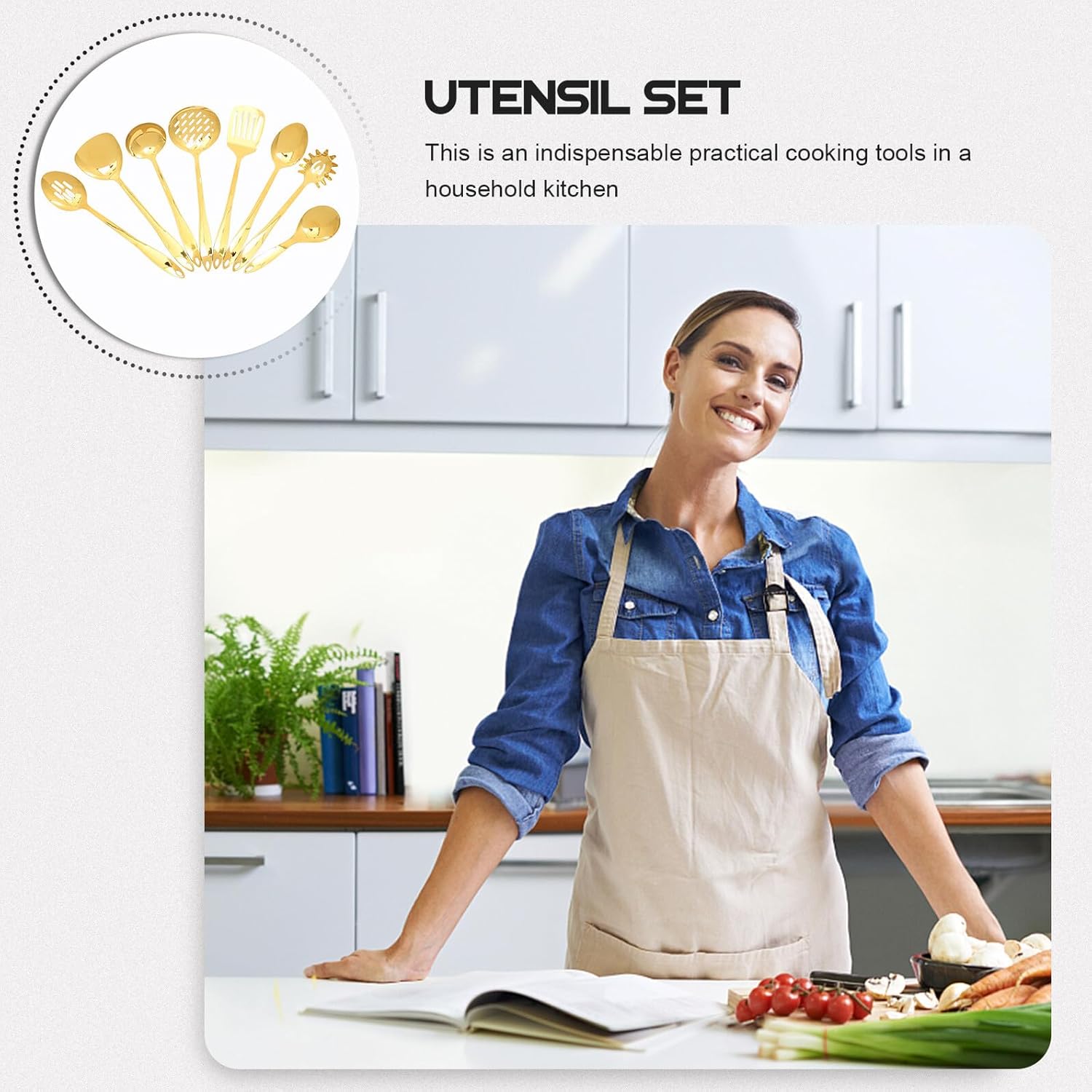 Package List 1 x Rice Scoop 1 x Slotted Turner 1 x Soup Spoon 1 x Noodle Spoon 2 x Slotted Spoons 1 x Turner 1 x Spoon Characteristics -Size slotted turner: 36.5x7.7/ 14.37x3.03in stainless steel cooking utensils -Size soup spoon: 31x9cm12.20x3.54in kitchen accessories -Product Info:Kitchenware set -Size spoon: 36x7cm/14.17x2.76 kitchen utensils -Size slotted spoon: 7.2x35.5cm/2.83x13.98in stainless steel cooking spoon -Size slotted spoon 2: 36x11.5cm/14.17x4.53in metal kitchen utensils -Material:Stainless steel stainless steel utensils -Size turner: 35x9.7cm/ 13.78x3.82in stainless steel cooking utensil -Color:Golden cooking utensil stainless steel -Size rice scoop: 9x7.2cm/ 3.54x2.83in stainless cooking utensils. -Size noodle spoon: 7.4x32cm2.91x12.60in stainless steel kitchenware -They crafted with ergonomic design, convenient and comfortable to hold and grip kitchen utensils stainless steel. -Featuring with a utility hanging hole at the end of the handle for convenient storage, smooth edges and comfortable to use stainless steel utensils for cooking. -Heat resistant kitchen tools are suitable for frying or grilling any type of foods, without any substance restaurant cooking tools.Goods Informationcooking utensil stainless steel Simple and elegant design makes them appropriate for dinner table and kitchen.stainless steel utensils for cooking This utensil set is made of , and safe.kitchen utensils stainless steel They are non-stick, stain resistant, and heat-resistant, so they are easy to clean and healthy for your life.metal cooking utensils They will never cut your hands because of smooth surface