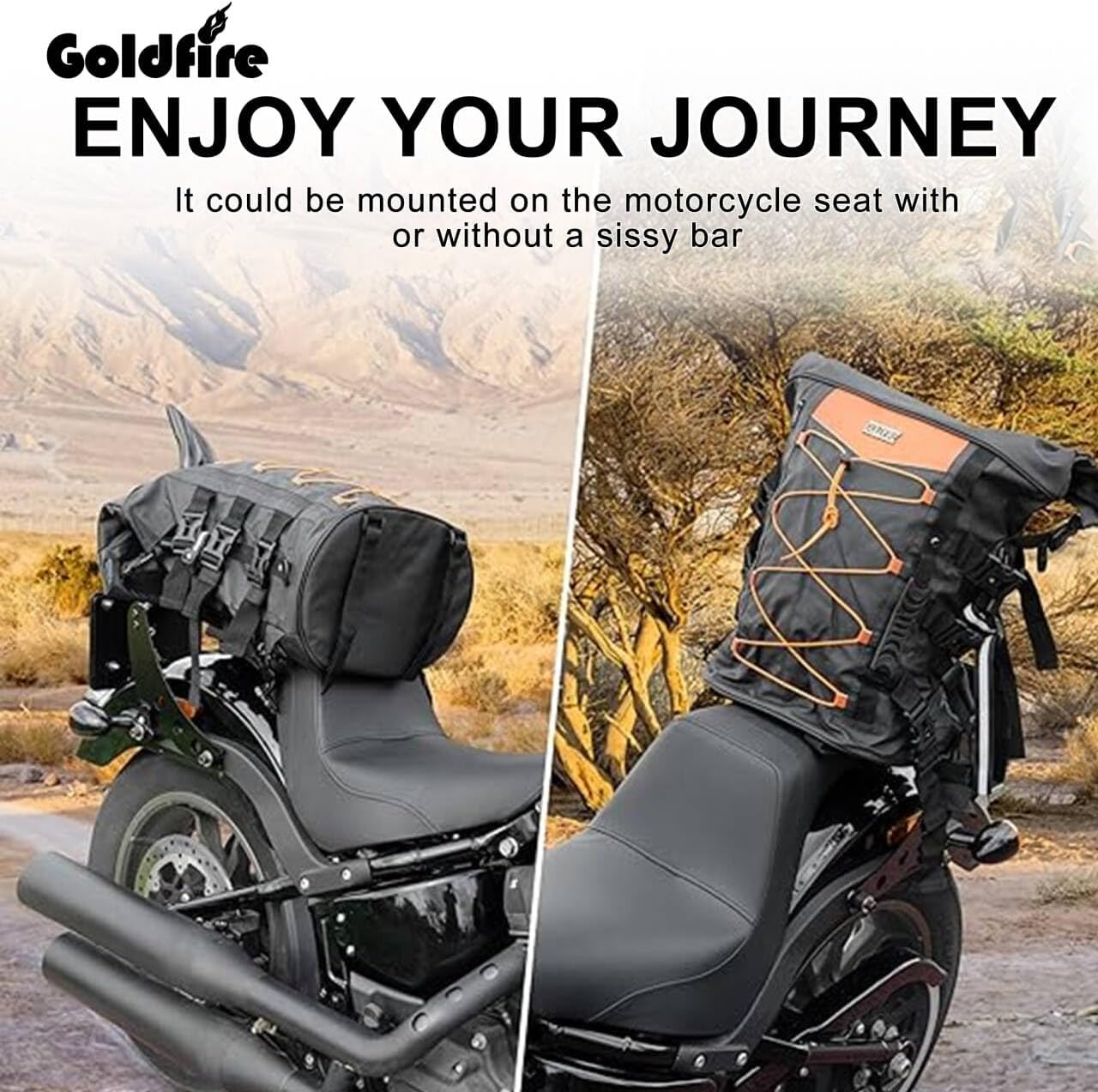 Goldfire Cooling Arm Sleeves 1 Pair Motorcycle Cooling System Jacket Sleeve Vent for Riding Warm Weather Accessories, Expandable Motorcycle Sissy Bar Bag Weather Resistant Travel Luggage Storage Bag Motorcycle Tail Duffle Backpack Large Capacity 40L-65L with Sissy Bar Straps (Black Orange)