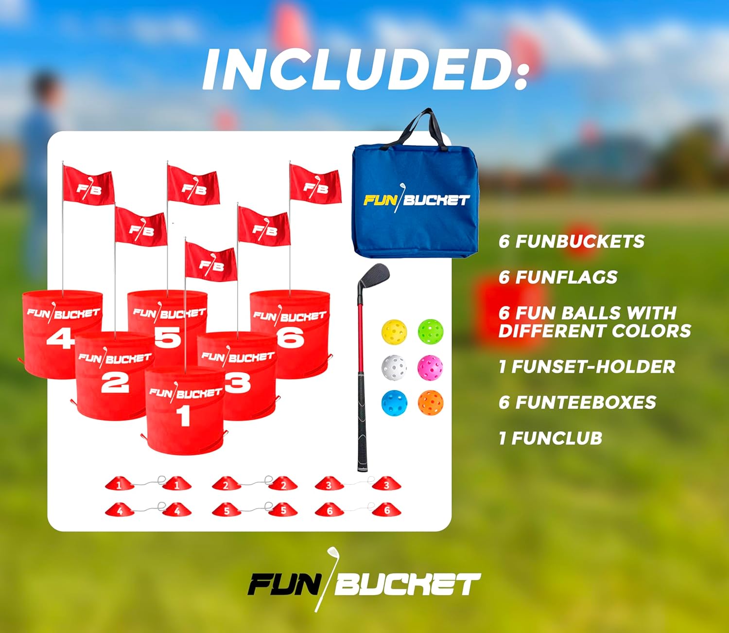 *FunBucketGame - The Ultimate Golf Set for Unforgettable Fun!** Unleash the joy of golf with FunBucketGame, an innovative and meticulously crafted golf set designed to elevate your outdoor experiences. This all-in-one kit features: - Durable, lightweight buckets that can be used on any surface, ensuring play anywhere. - Vibrant flags that bring authenticity and excitement to your game. - A convenient FunSet Holder for effortlessly organizing your accessories. - A versatile golf club that caters to all skill levels. - Six high-quality balls engineered for precision and maximum enjoyment. **Play Anytime, Anywhere!** Enjoy quality time with family and friends in incredible settings like beaches, backyards, parks, snowy regions (exercise caution), or even by lakes. FunBucketGame adapts to any terrain, providing you with hours of joyful entertainment. **Perfect for Every Occasion!** - Ideal for family gatherings, parties, or laid-back days at the park. - A thoughtful gift for golf lovers, whether they are just starting their journey or are seasoned players. - Encourages outdoor activity and bonding time with loved ones. Crafted from durable and safe materials, FunBucketGame ensures that everyone can join in the fun. Turn any space into your personal golf course and create lasting memories with FunBucketGame. This is the perfect solution for all golf enthusiasts looking for adventure! 🏌️♀️🌟